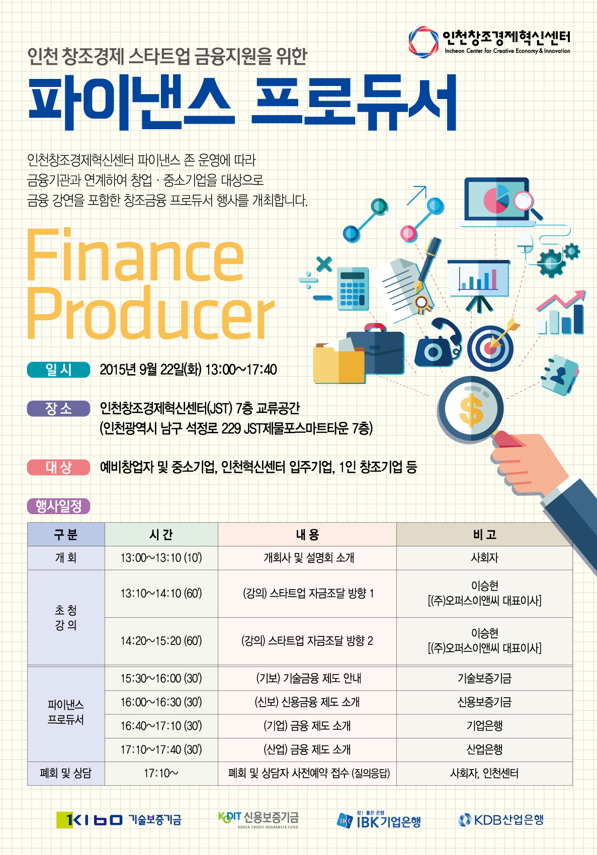인천창조경제혁신센터 파이낸스 프로듀서 행사 안내