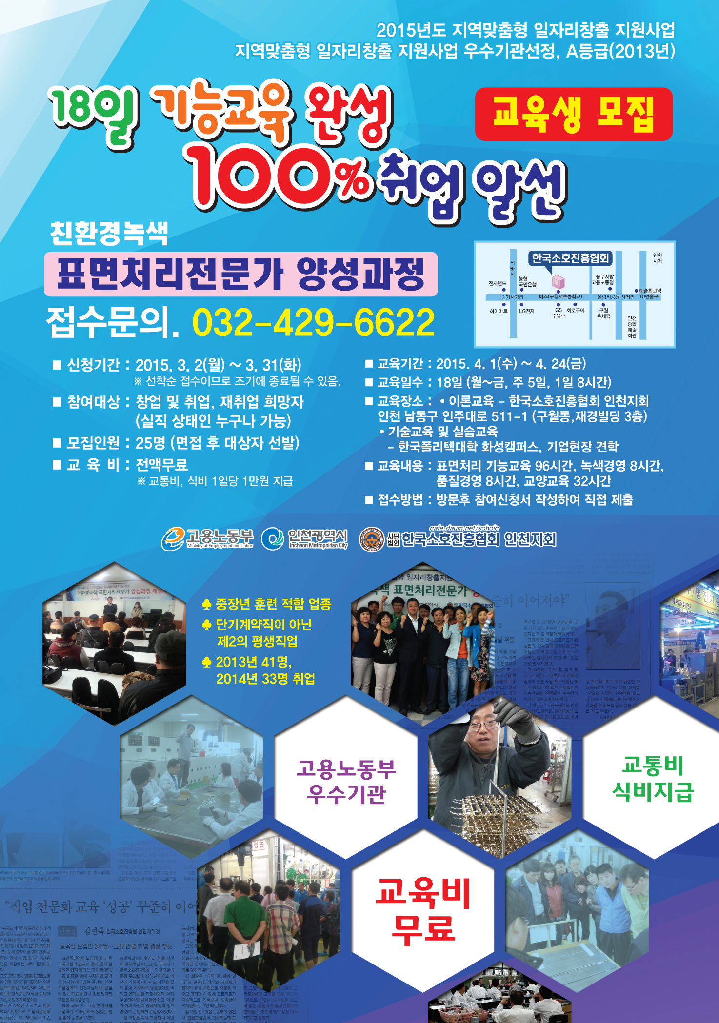 지역맞춤형 일자리창출 지원사업(표면처리전문가 양성과정 교육생 모집)
