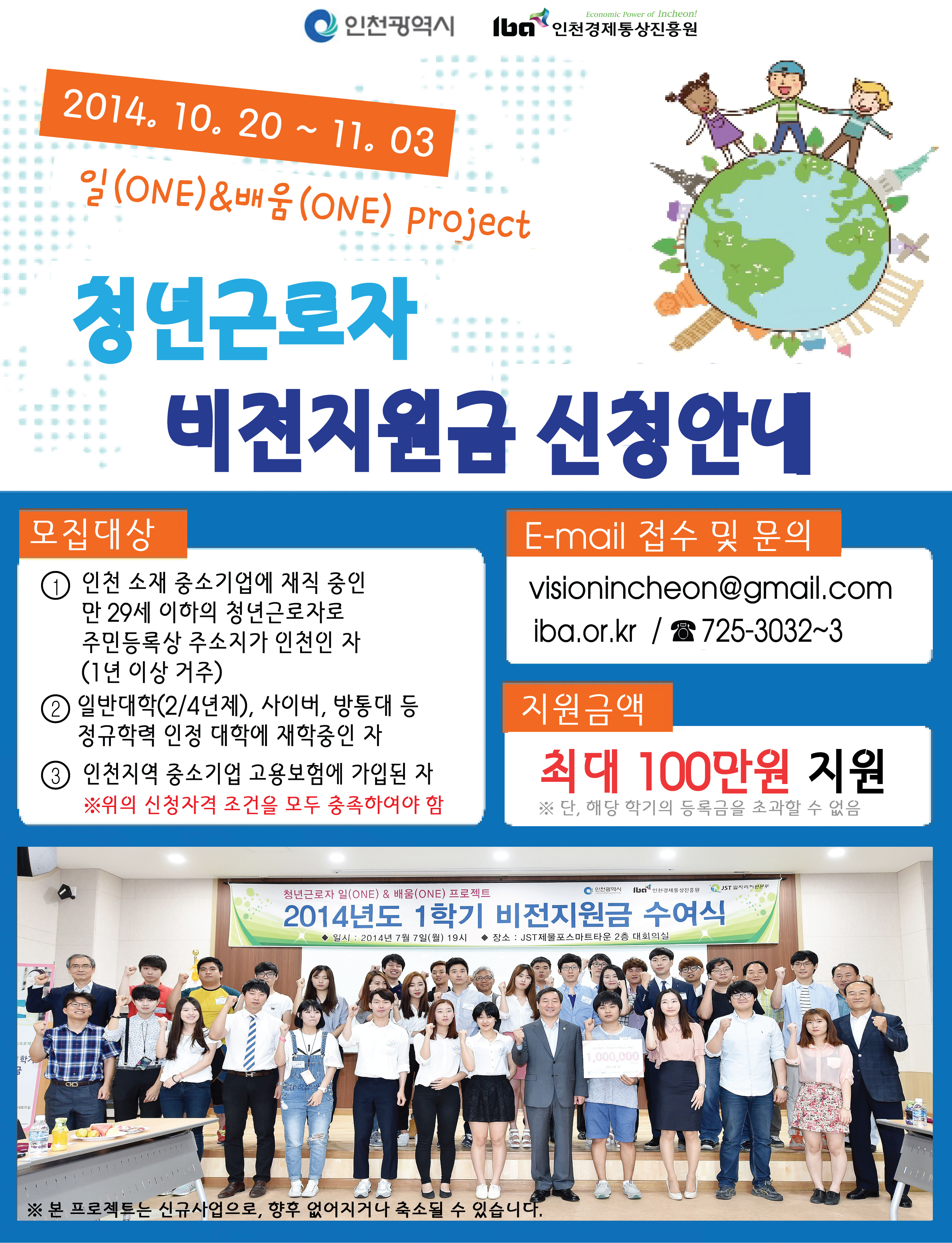 2014. 2학기 청년근로자 일(ONE) 배움(ONE) 프로젝트 비전지원금 대상자 모집