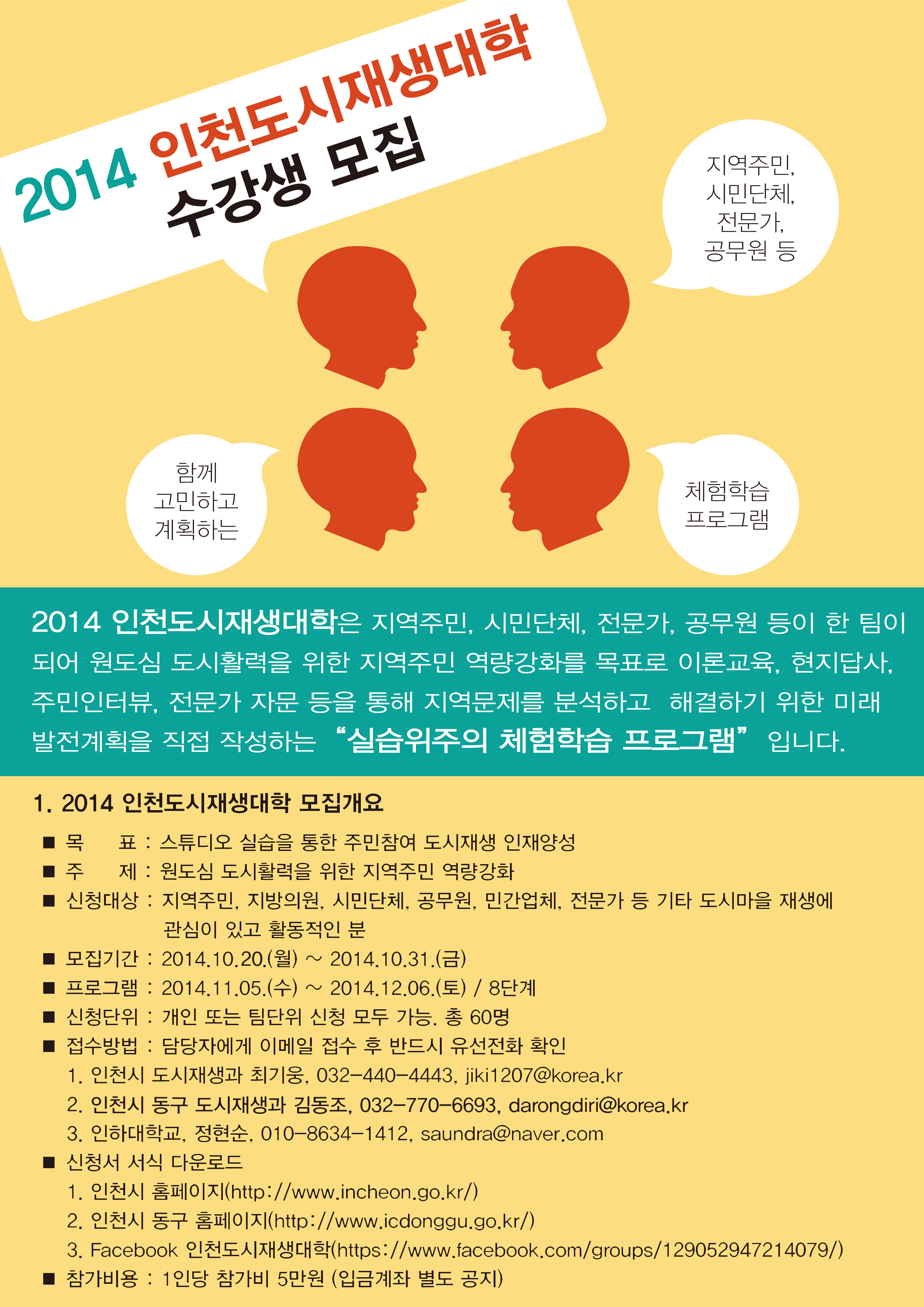 첨부 : 2014 인천 도새재생대학 운영 개요 및 수강생 모집 공고문