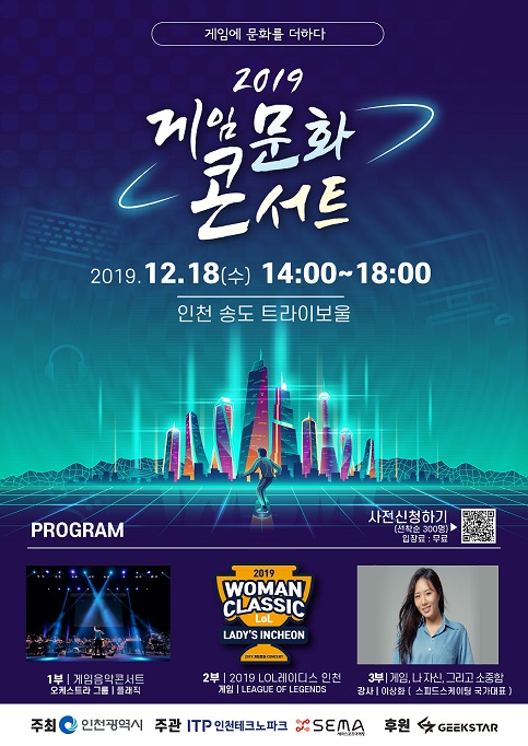 오는 12월 18일 오후 2시부터 인천 송도 트라이보울에서 '2019 게임문화 콘서트'를 아래와 같이 개최하오니