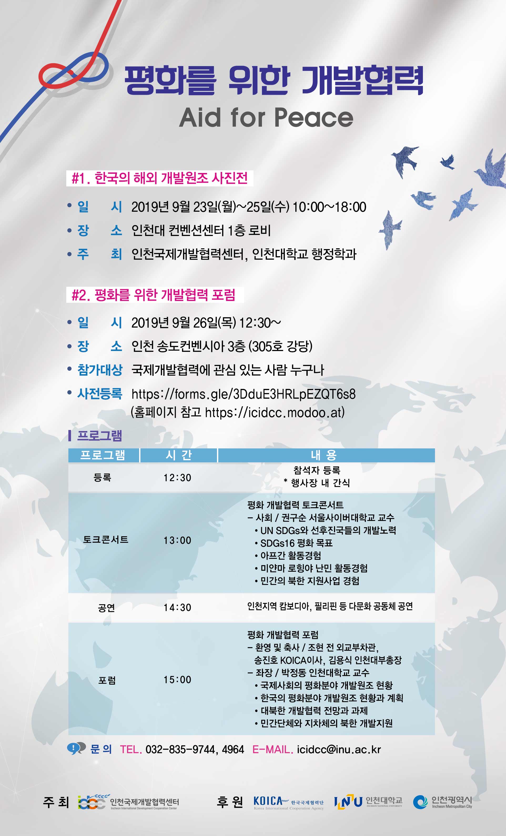 인천국제개발협력센터 『2019 평화를 위한 개발협력(Aid for Peace)』 행사 개최 안내