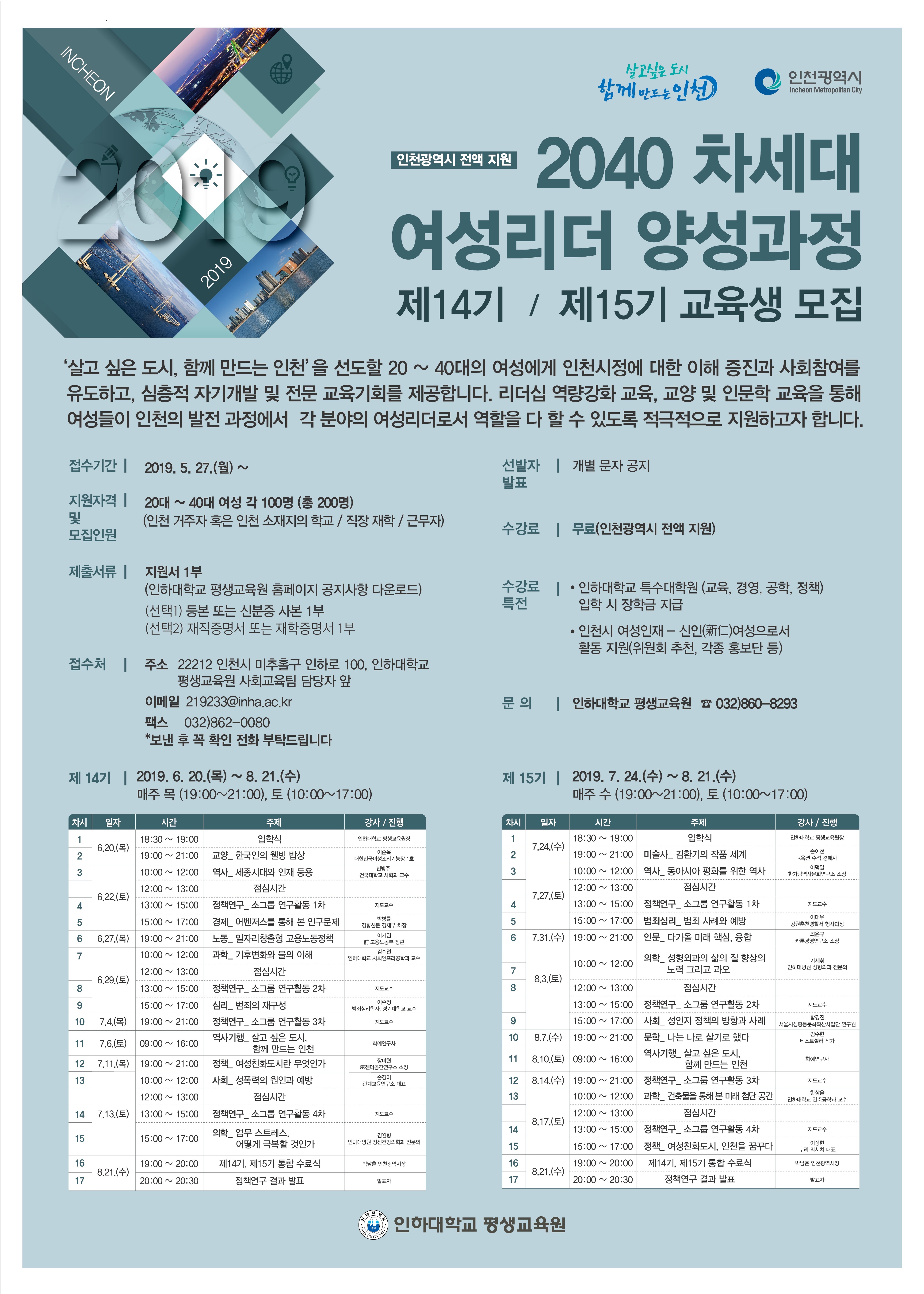 -문 의 : 인하대 평생교육원 032-860-8293, 인천광역시 여성정책과 032-440-2697