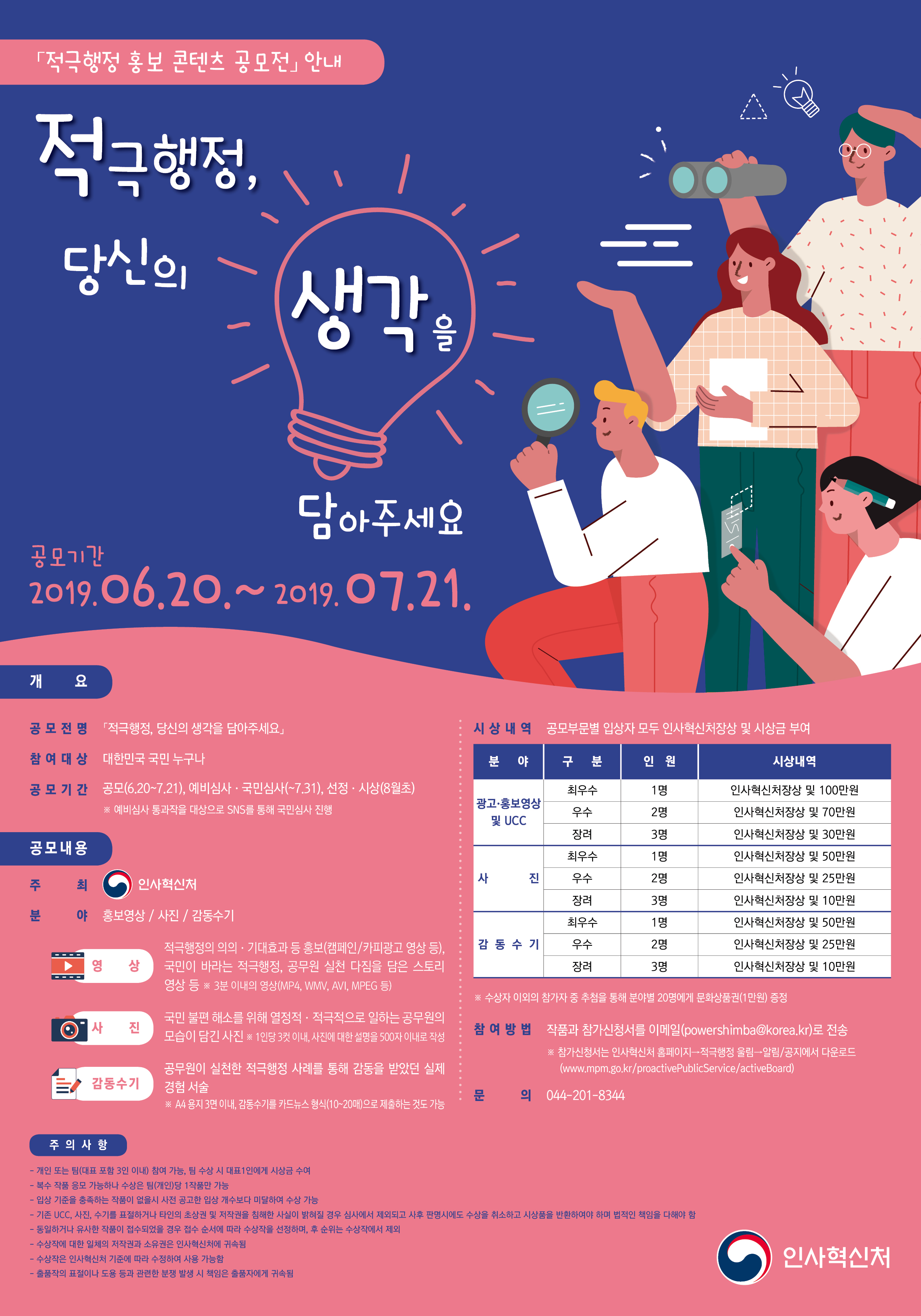 인사혁신처 주관 '적극행정 홍보 콘텐츠 공모전'을 다음과 같이 개최하오니