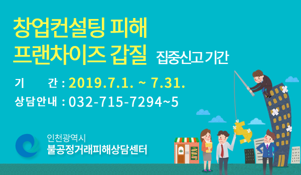 인천시에서는 "창업컨설팅·프랜차이즈 갑질”관련하여 집중신고를 받고 있습니다.