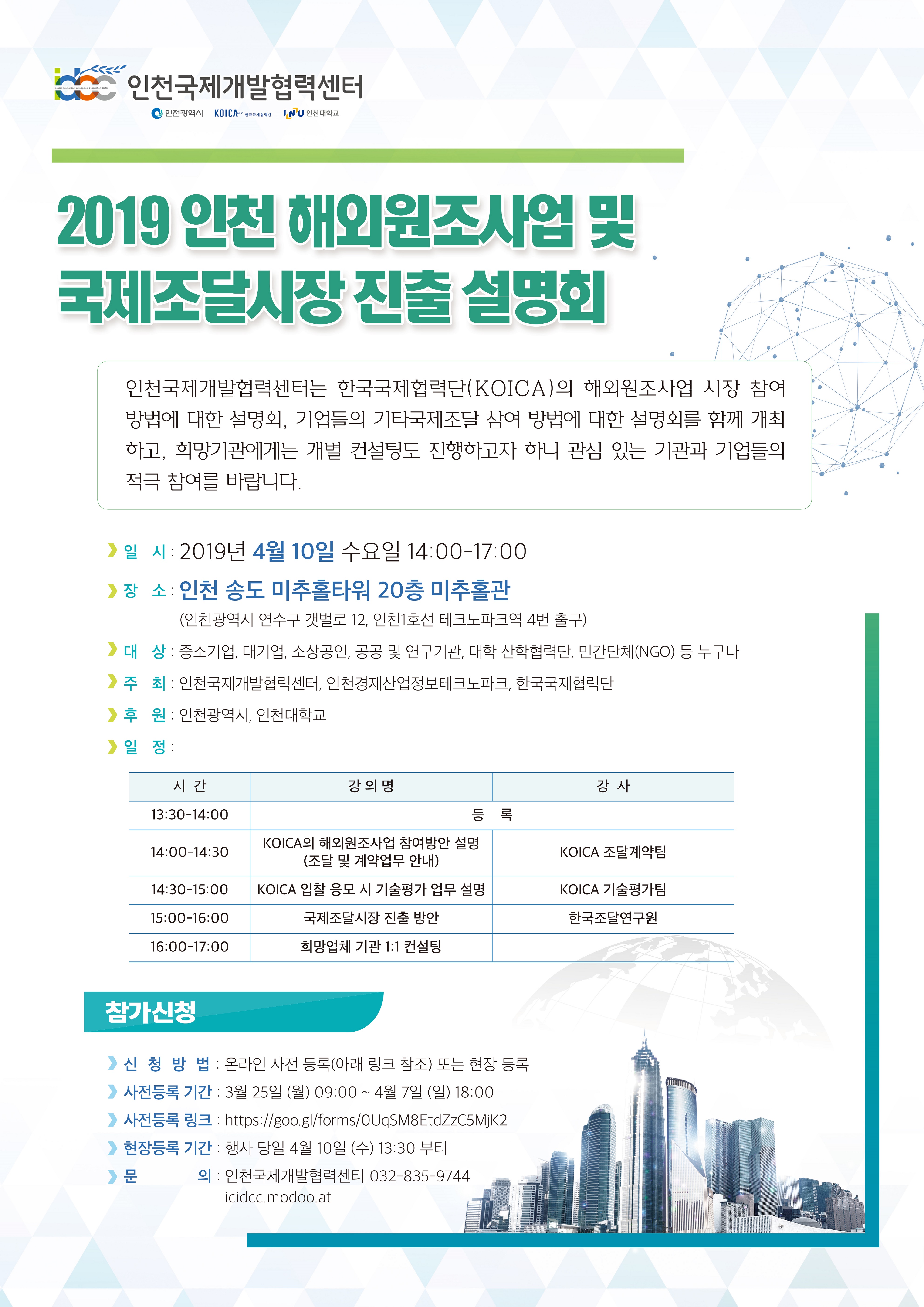 2019 인천 해외원조사업 및 국제조달시장 진출 설명회 개최 안내