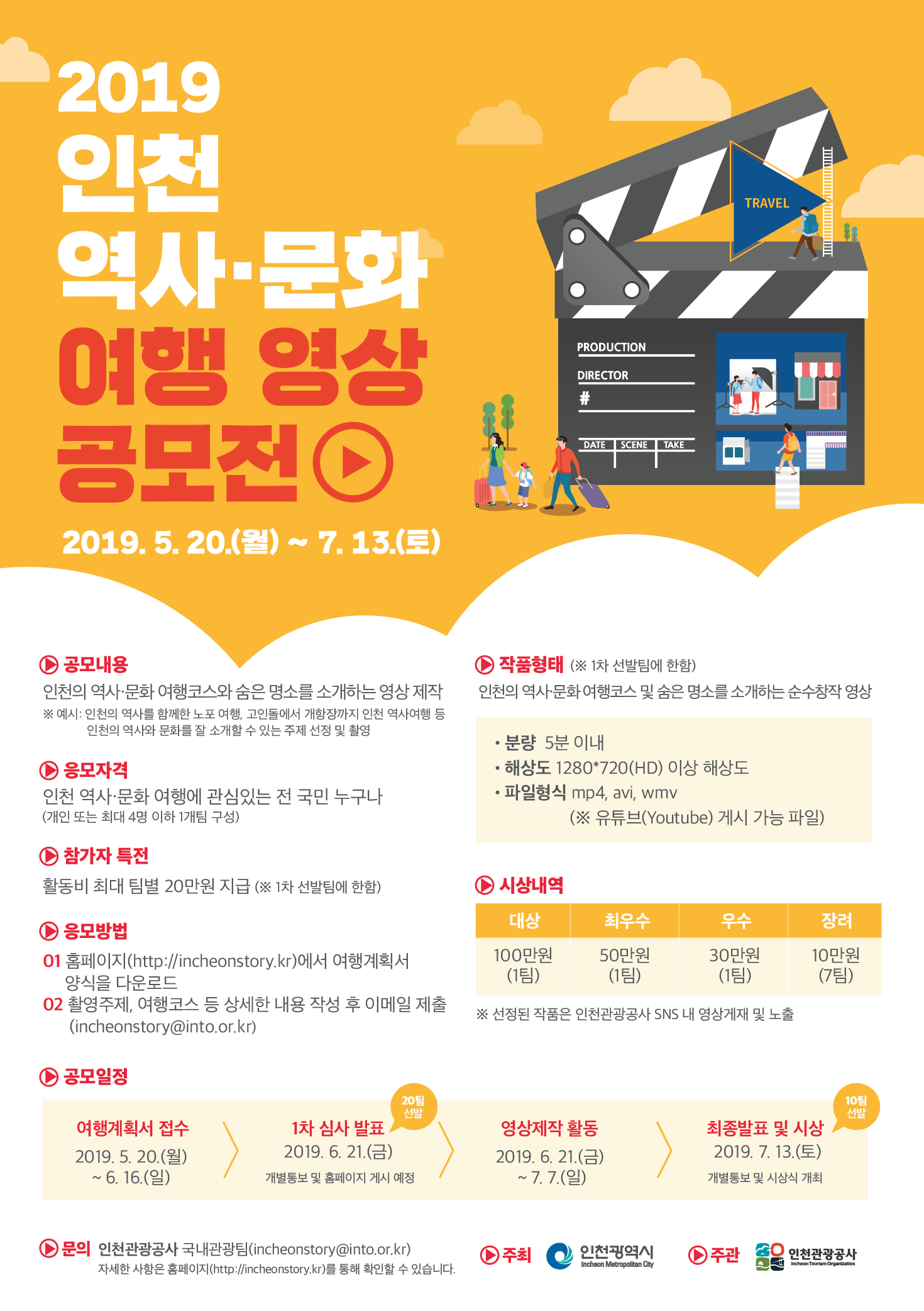 - 응모주제 : 인천의 역사, 문화 여행코스와 숨은 명소를 소개하는 영상 제작