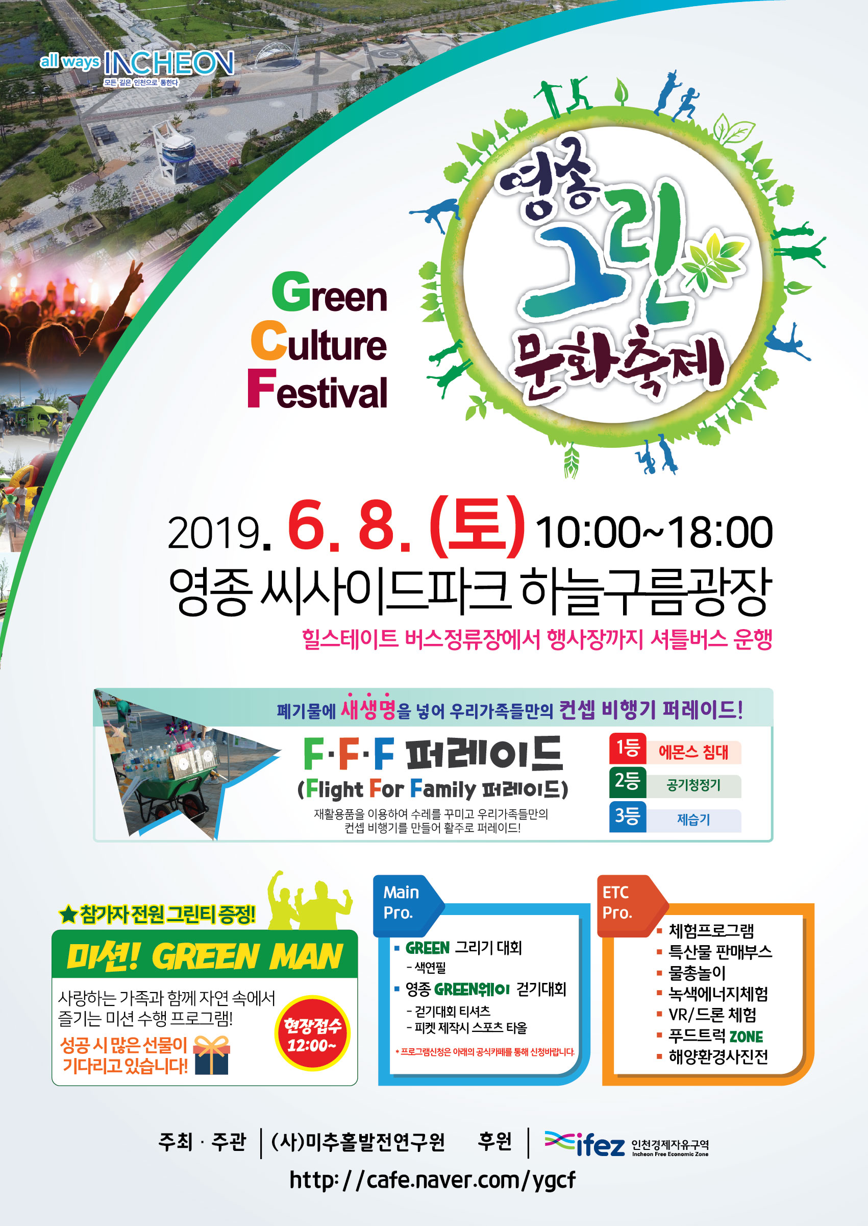 영종그린웨이걷기대회, FFF퍼레이드, 그린그리기대회, 미션! 그린맨, 체험프로그램 등