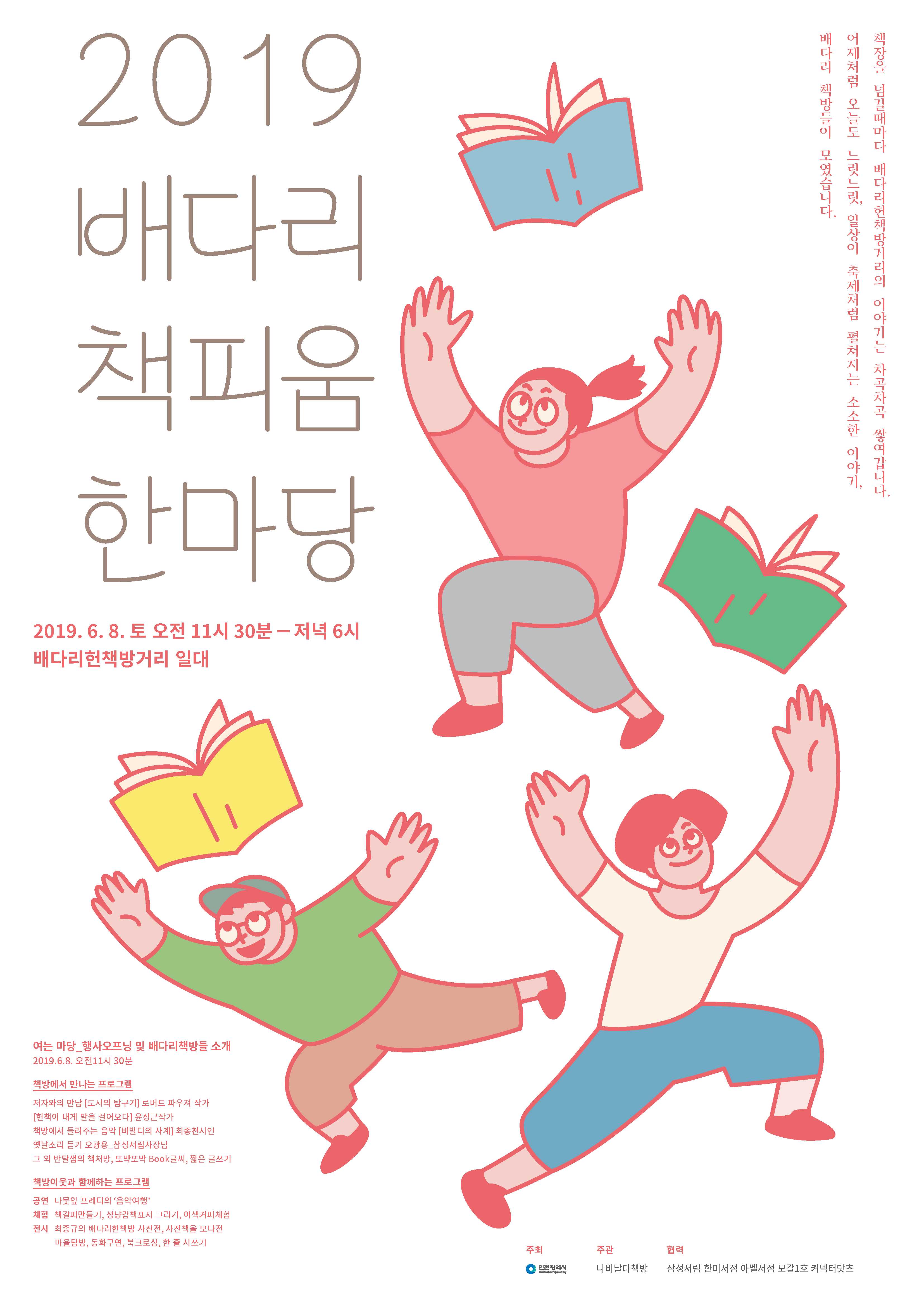 2019년 책,피어라 콘서트의 첫번째 콘서트가 배다리에서 「2019 배다리 책피움 한마당 」으로 열립니다. 책방에서 만나요, 책방과 이웃해요, 전시도 열려요, 이야기 가게도 열려요등의 코너와 15개의 부스를 운영하여 찾아오시는 시민들과 함께 할 예정입니다