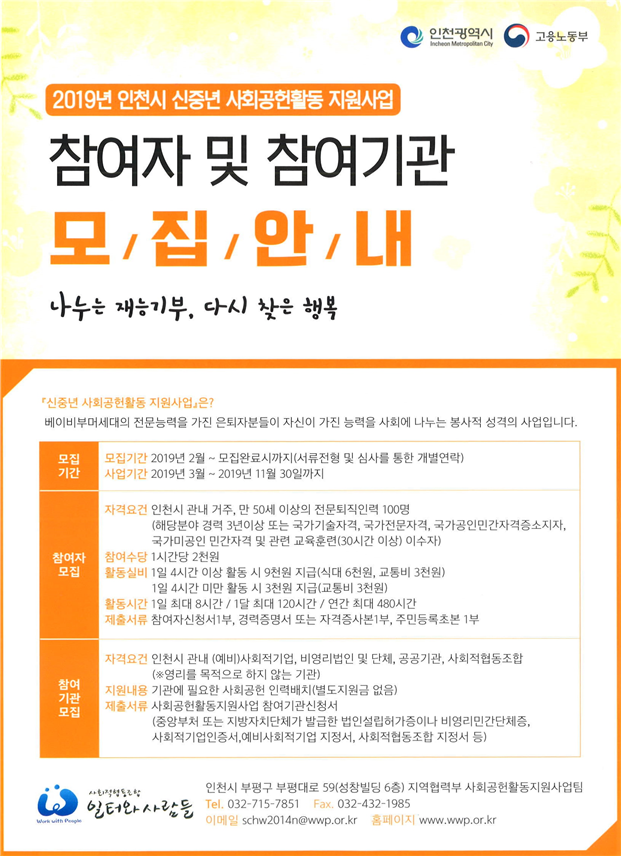 첨부 : 2019년도 신중년 사회공헌활동지원사업 참여자모집포스터