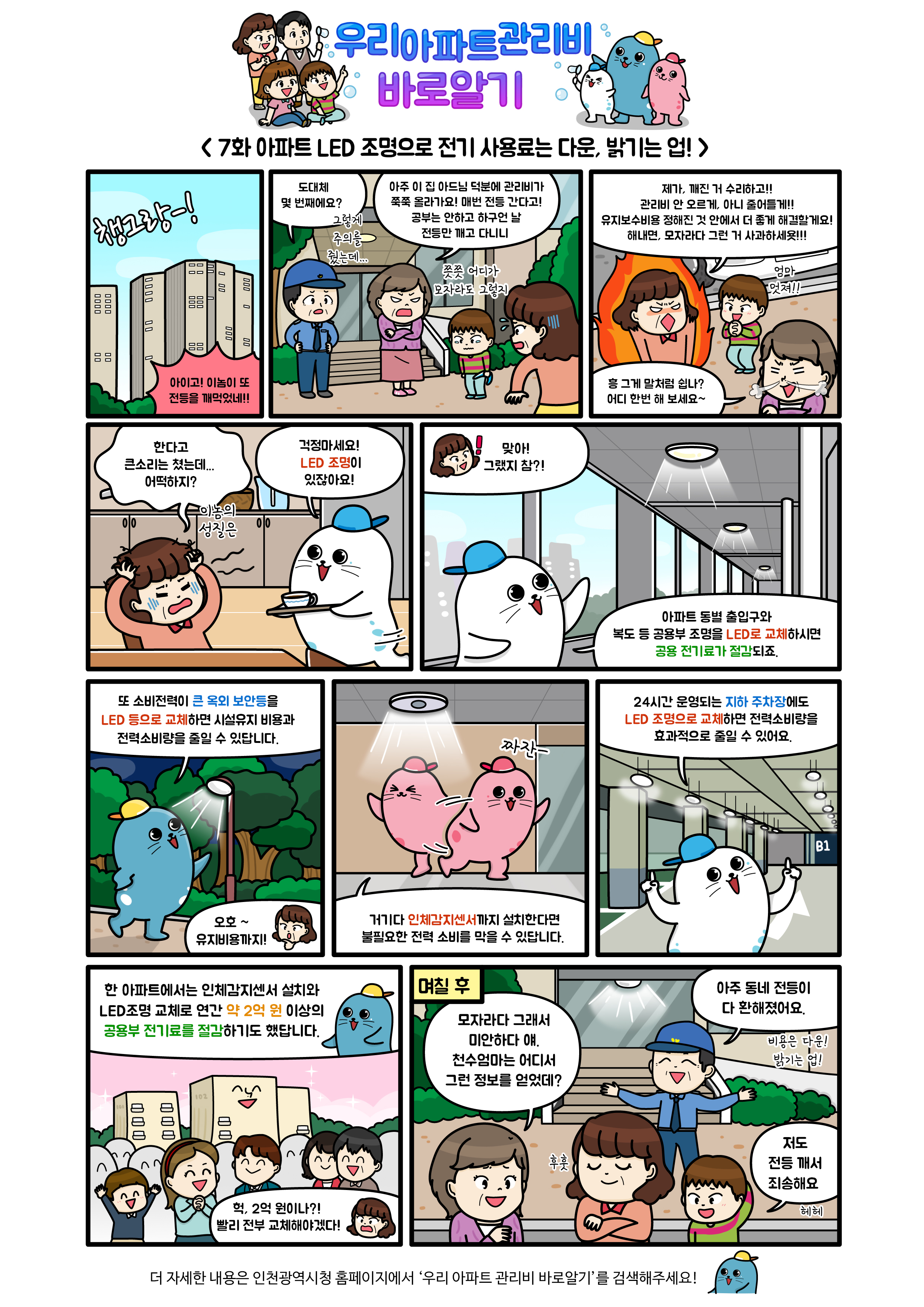 ‘우리 아파트 관리비 바로알기’ 웹툰 7화(아파트 LED조명으로 전기세는 다운, 밝기는 업!)