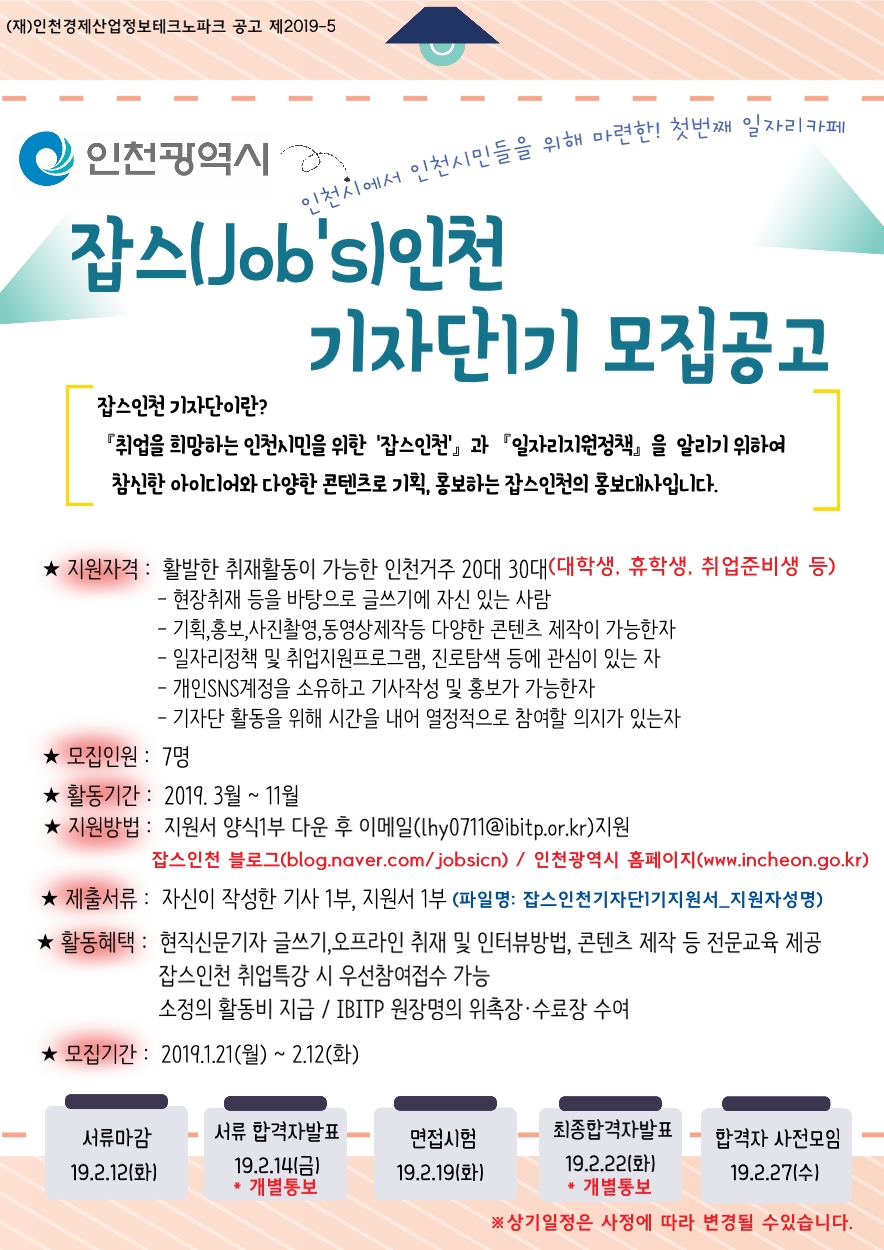 ☞ 클릭 (안내문) 잡스인천 기자단 모집