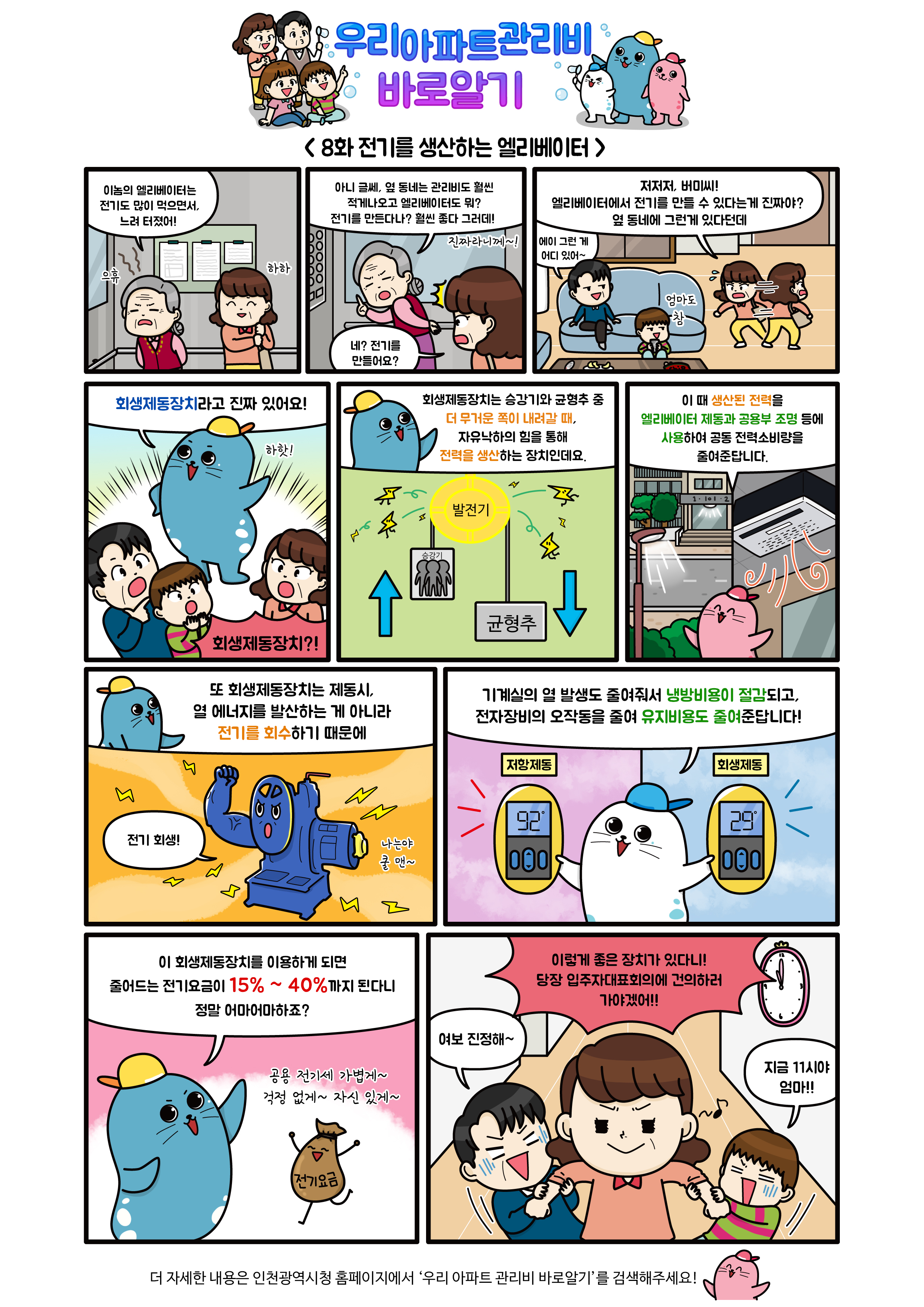 ‘우리 아파트 관리비 바로알기’ 웹툰 8화(전기를 생산하는 엘리베이터)