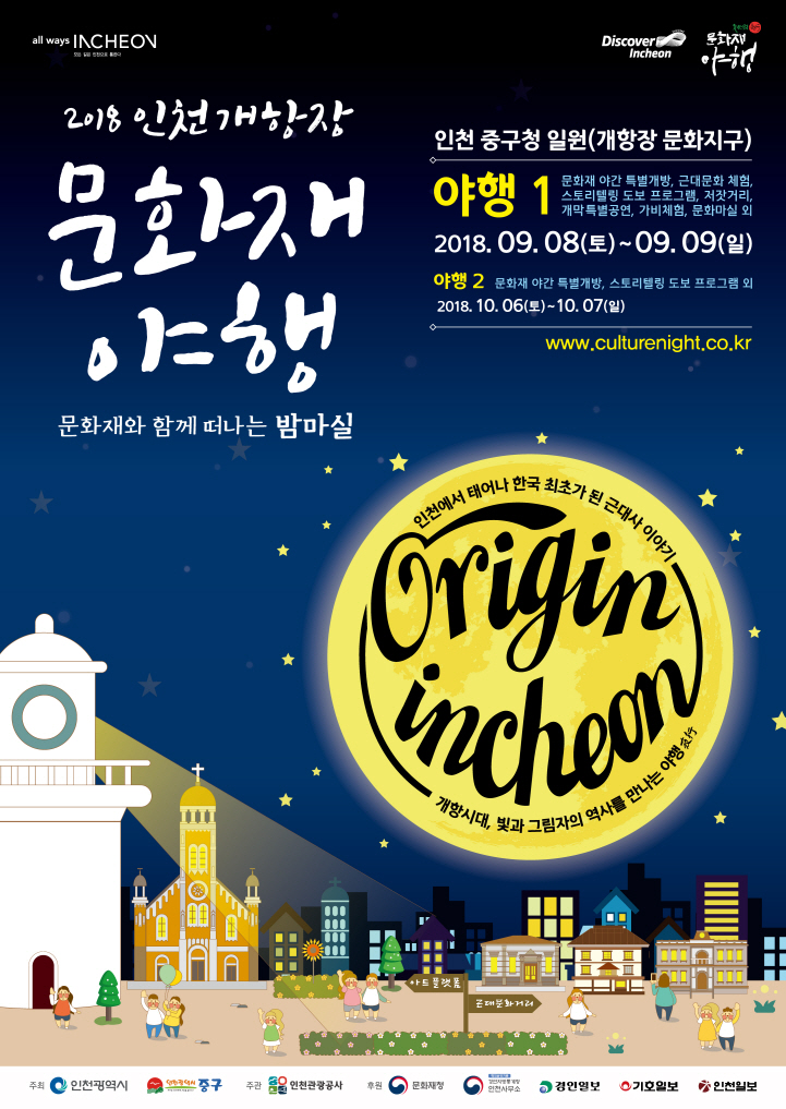 인천시 대표 문화관광 축제인 2018 인천 개항장 문화재 야행이 2018.9.8.(토)~9.9(일)양일간 중구 개항장 문화지구 일원에서 개최됩니다.
