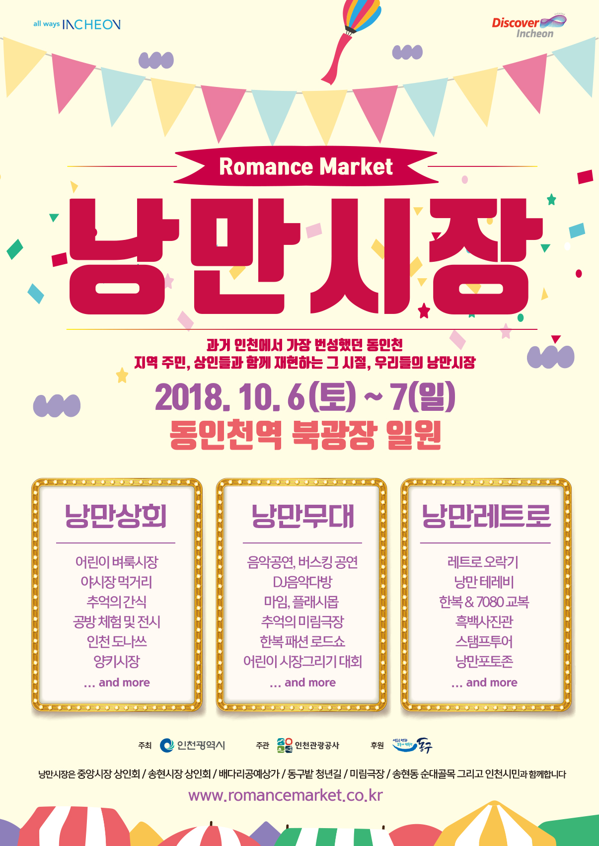 동인천 북광장과 주변 시장을 무대로 인천의 낭만과 추억을 담은 낭만시장 축제를 다음과 같이 개최합니다.