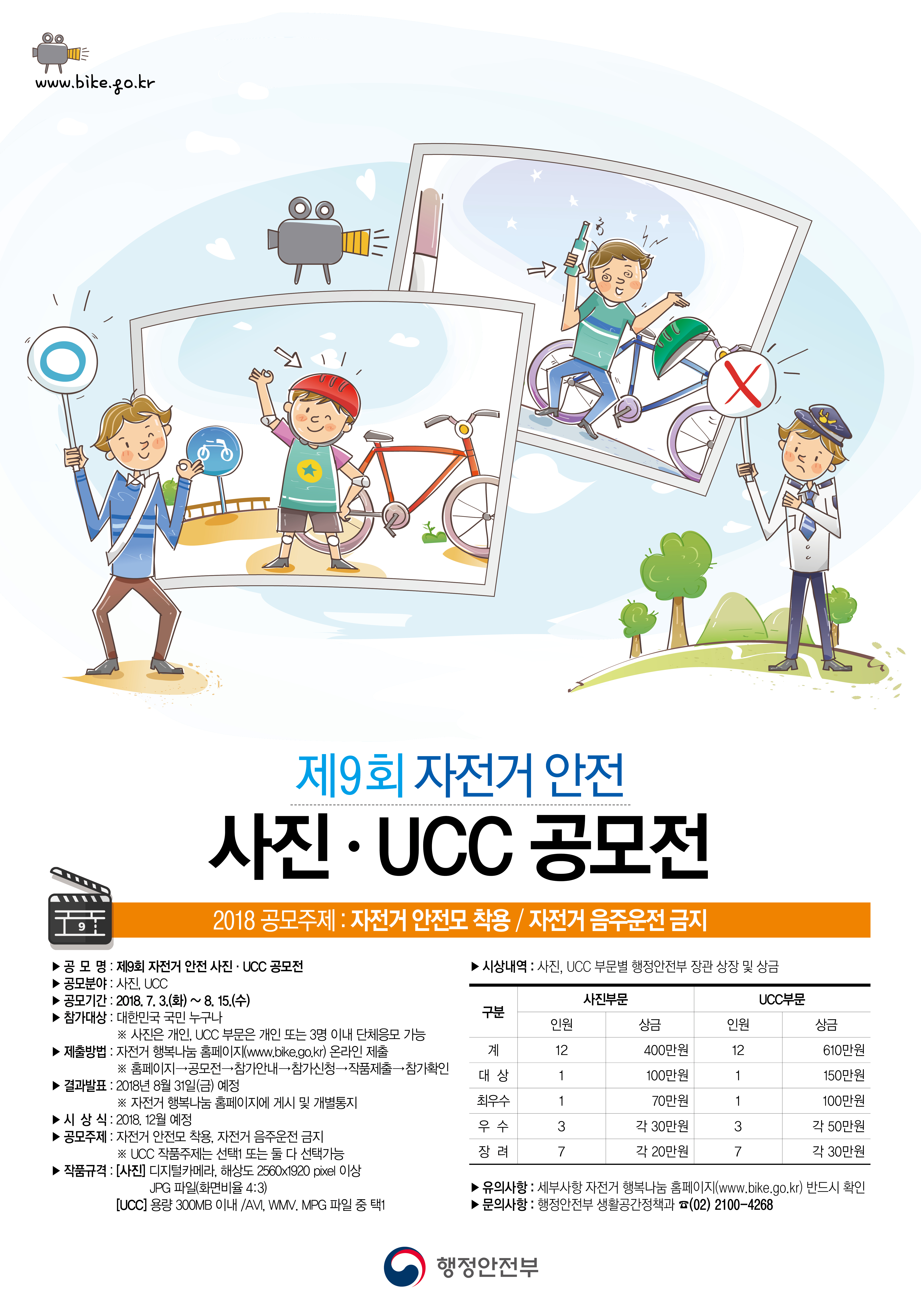 위하여 제9회 자전거 안전 사진 UCC 공모전을 개최하오니 적극적인 관심과 많은 참여 부탁드립니다