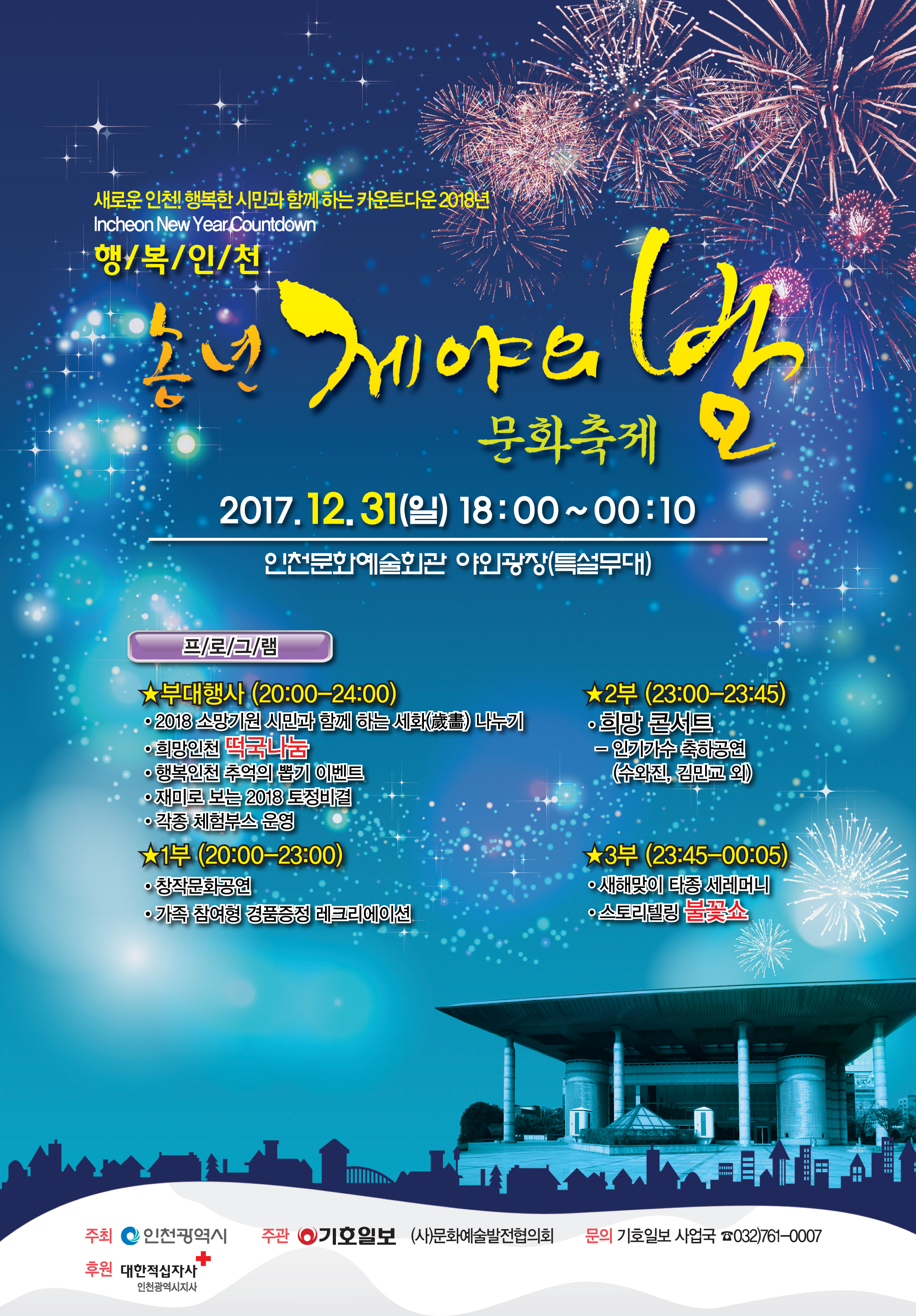 인천시민과 함께 2017년을 보내고 2018년 새해를 맞이하는 「송년 제야의 밤 문화축제」를 개최하오니 관심있는 분들의