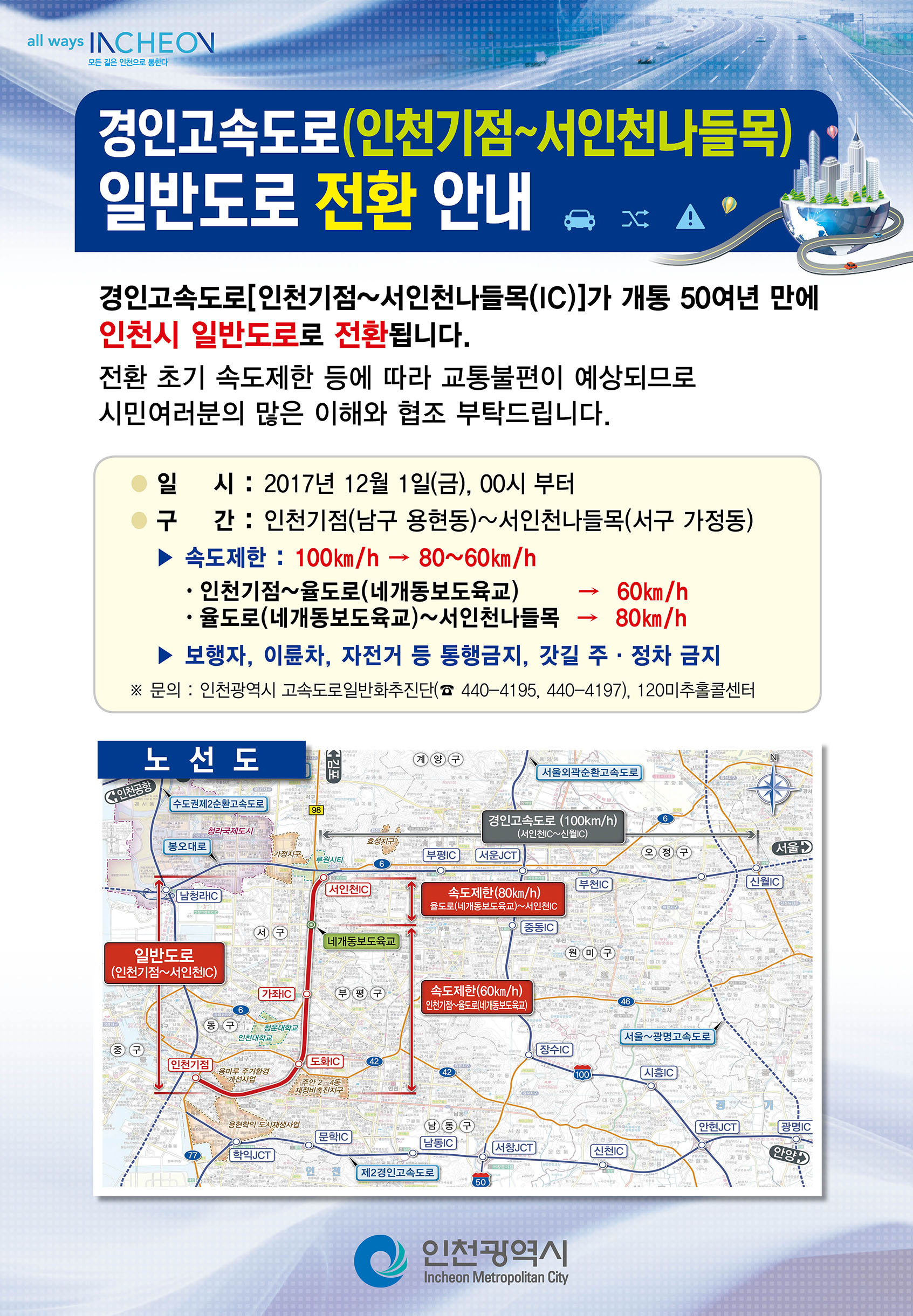 ※ 문의: 인천광역시 고속도로일반화추진단(☎440-4195, 4440-4197), 120미추홀콜센터