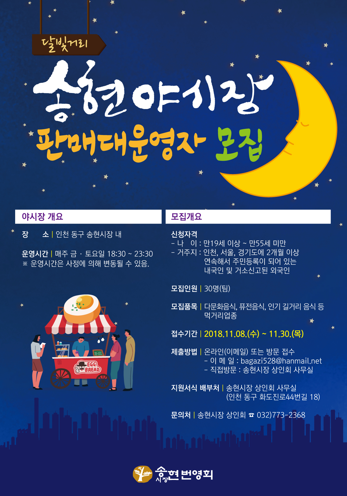 『달빛거리 송현야시장』에서는 2018년 야시장 판매대 운영자 모집