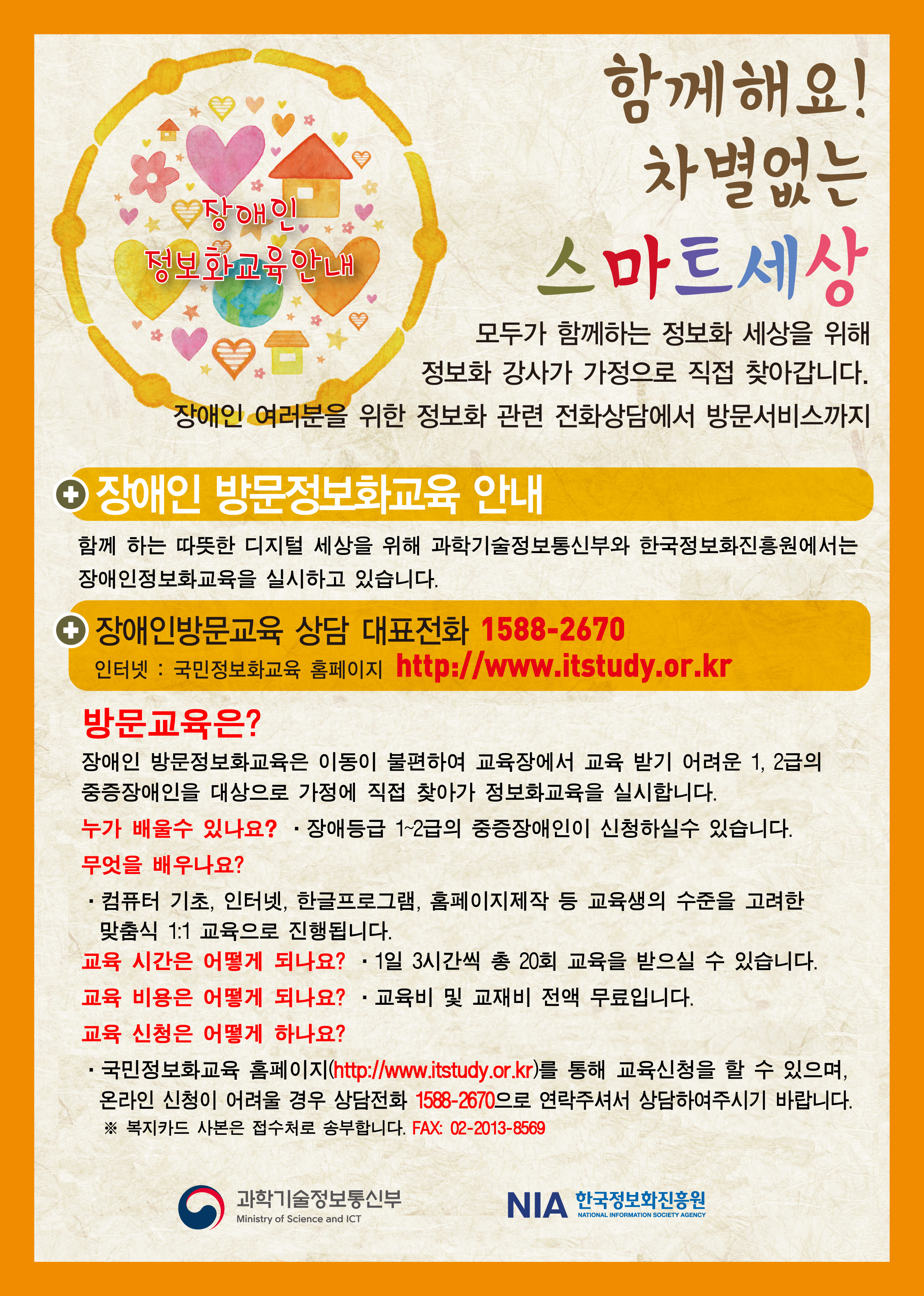 ※ 자세한 문의사항은 장애인 정보화상담실(☎1588-2670, able@nia.or.kr)로 문의