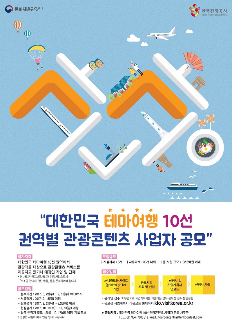 '대한민국 테마여행 10선' 권역별 관광콘텐츠 사업자 공모 안내