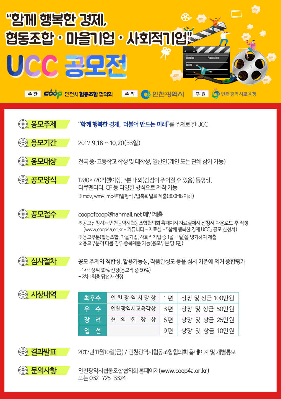 함께 행복한 경제(협동조합,마을기업,사회적기업)UCC공모전에 많은 참여 바랍니다.
