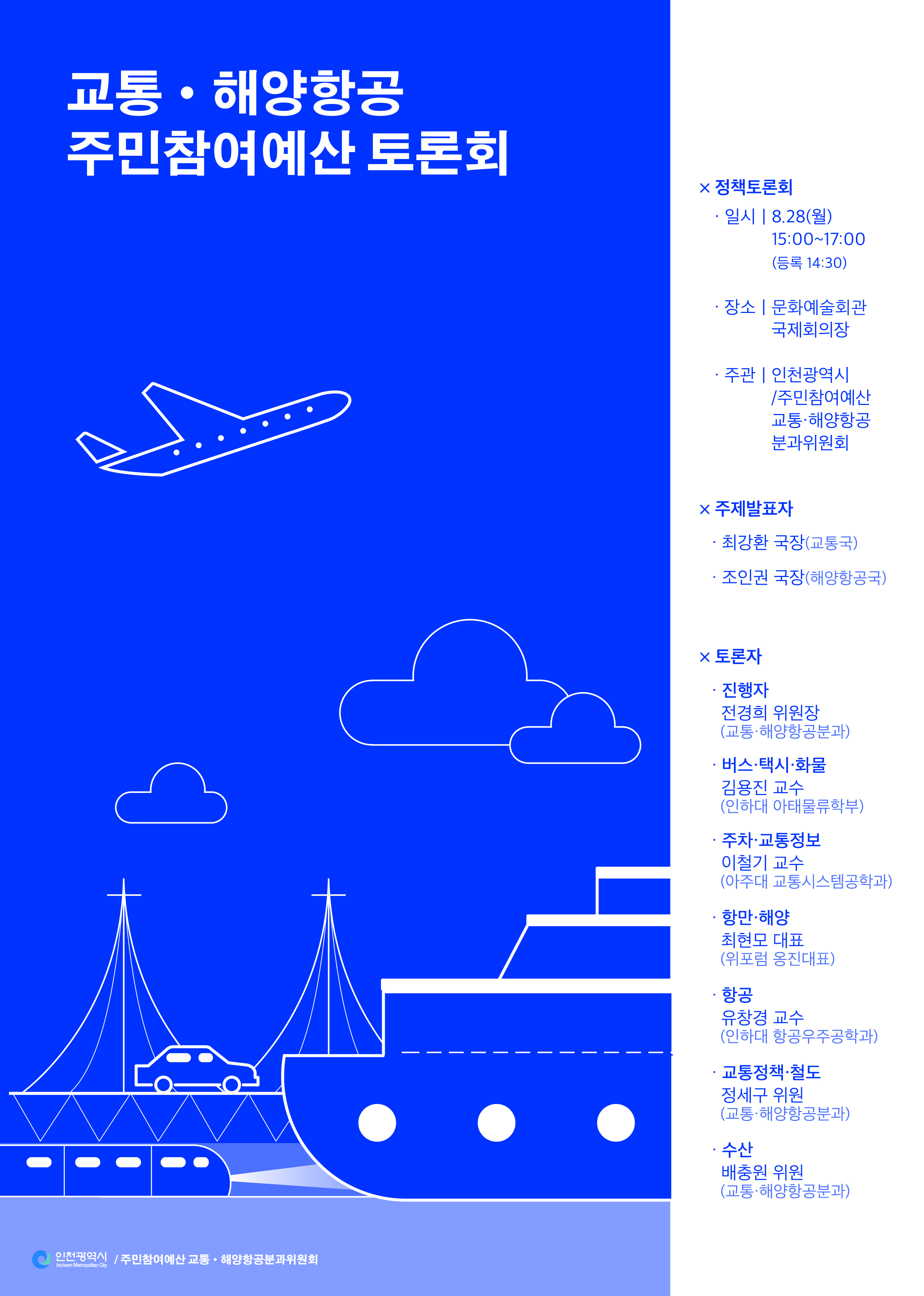 2017년도 주민참여 예산정책(교통·해양항공분야)토론회를 개최하오니 관심있는 분들의 많은 참여 바랍니다.