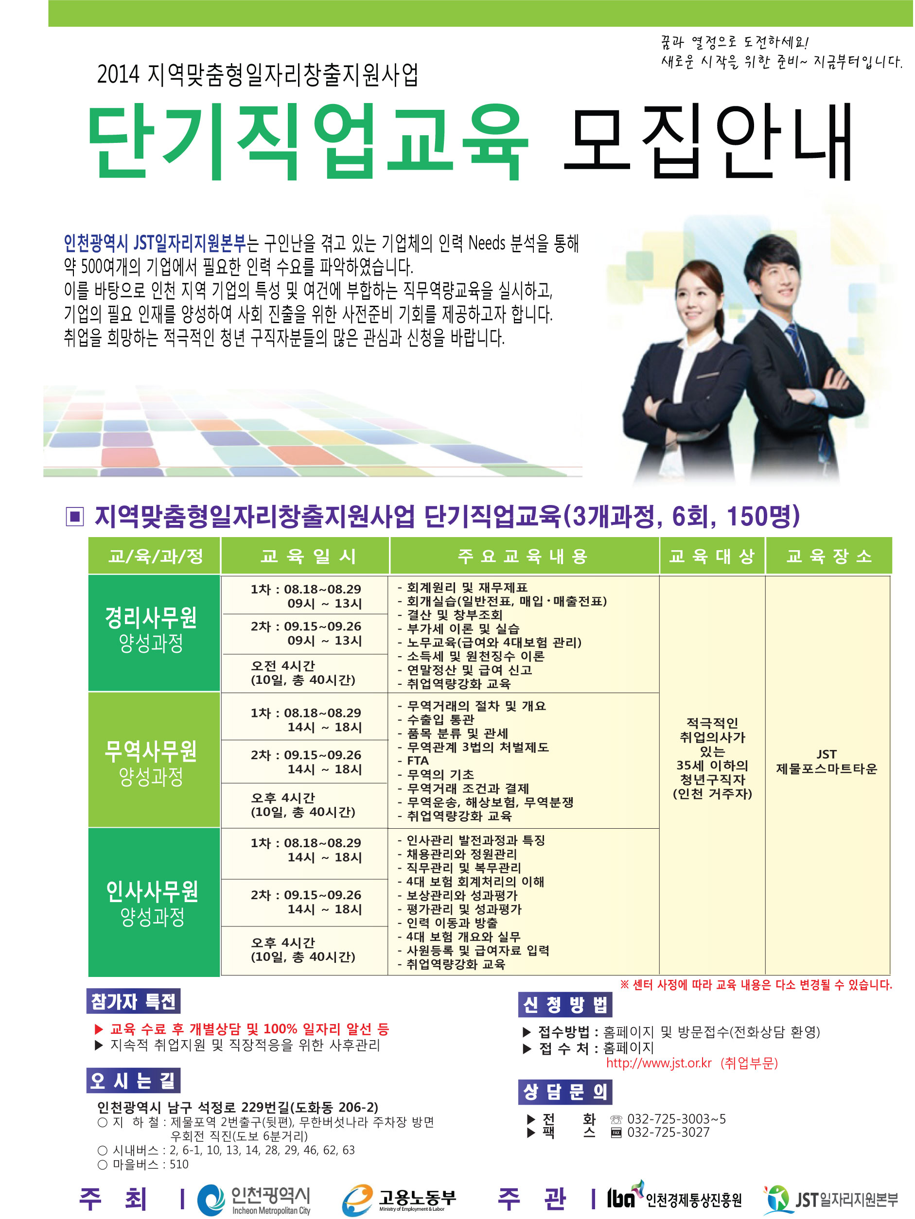 단기 직업교육을 실시하고 일자리를 알선해 드립니다.