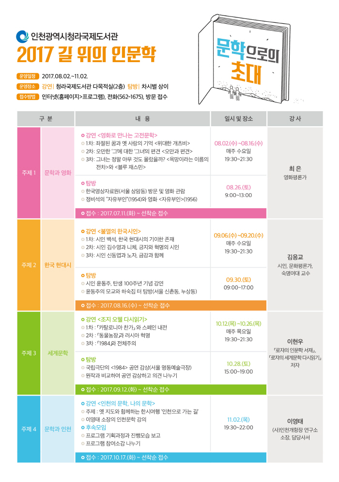 청라국제도서관 인문학 강좌 '길 위의 인문학 : 문학으로의 초대'