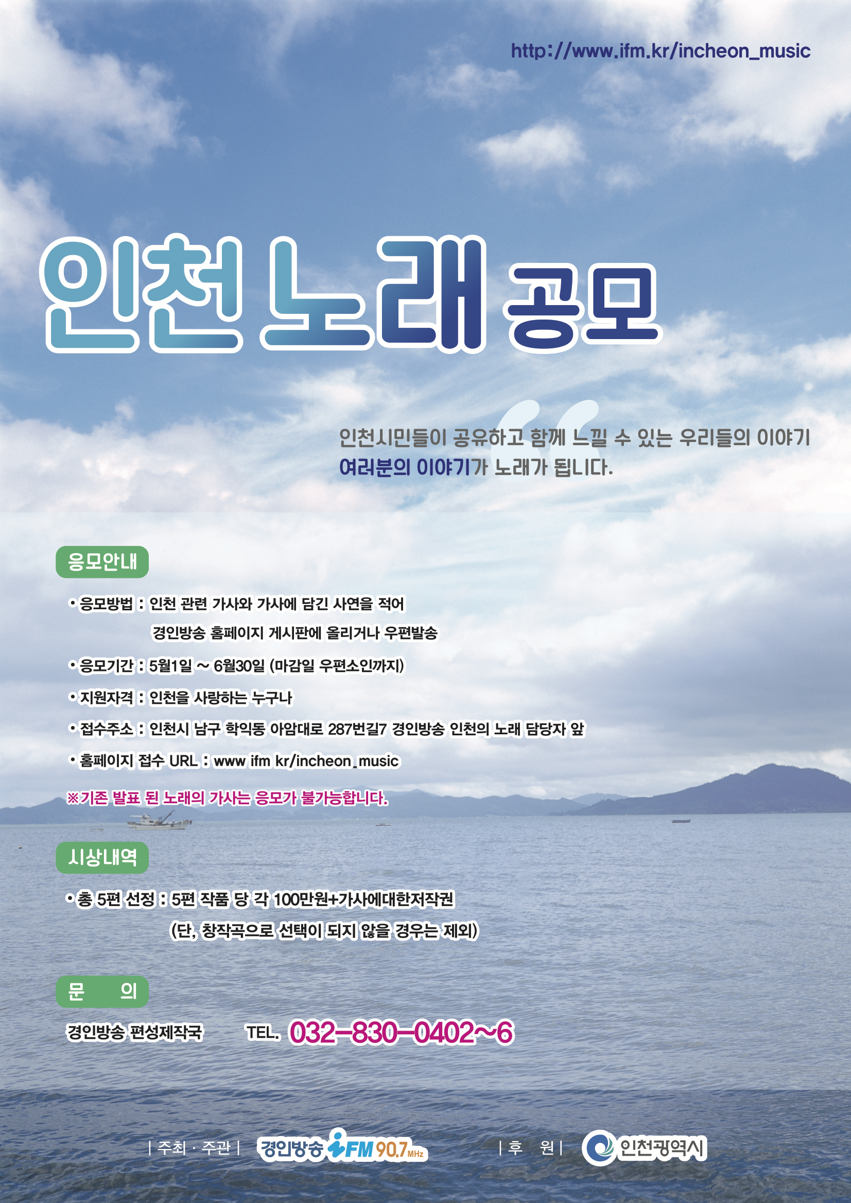인천 관련 가사와 가사에 담긴 사연을 공모합니다.
