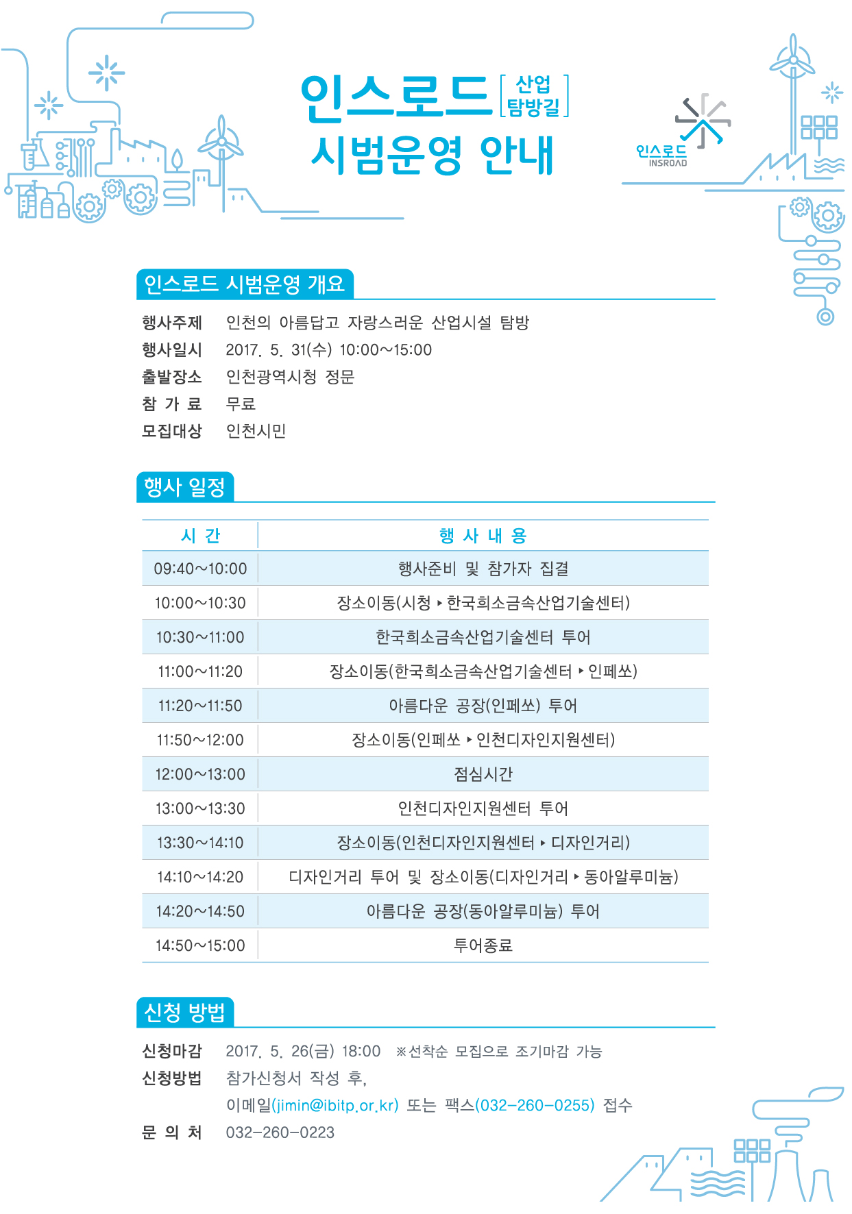 ❍ 참가신청 : 인스로드 참가 신청서 작성 후 이메일(jimin@ibitp.or.kr) 또는 팩스(032-260-0255)제출