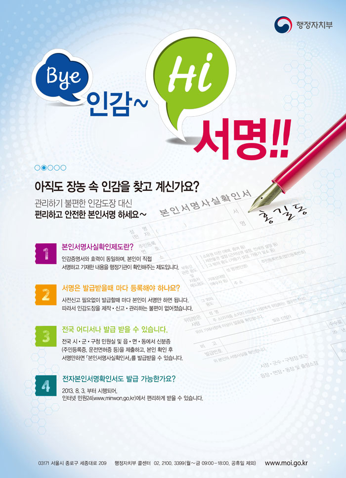 이제는 「인감증명서」 대신 「본인서명사실확인서」발급 받으세요
