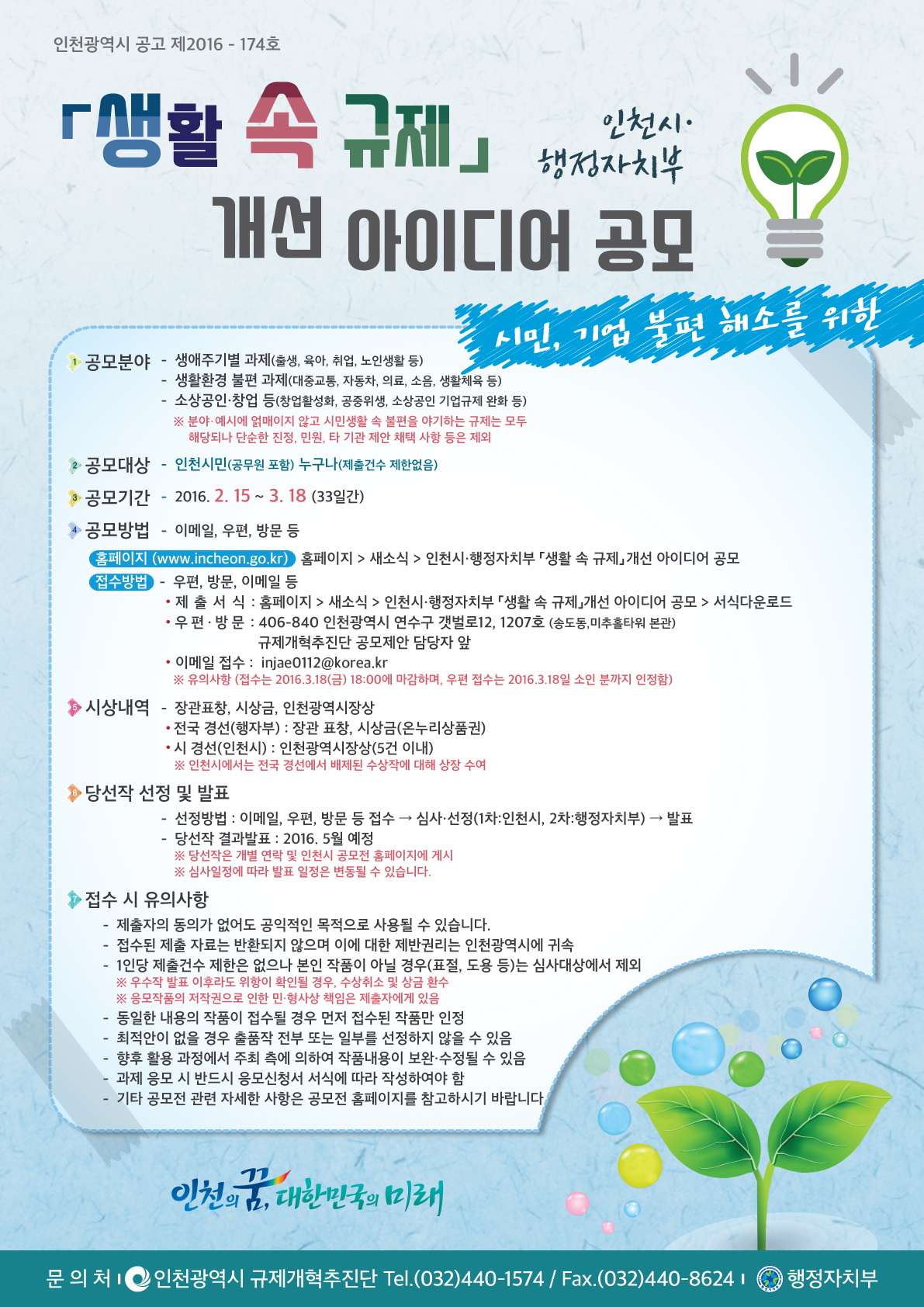 첨부 : 인천시·행정자치부 「생활 속 규제」개선 아이디어 공모 포스터