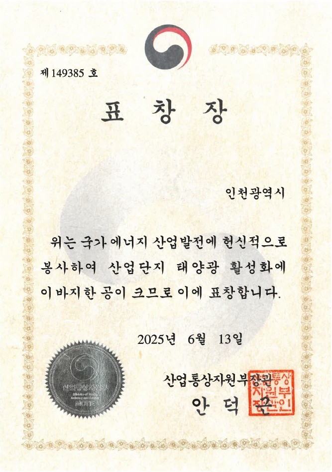 훈격: 산업통상자원부장관, 주관부서: 에너지산업과