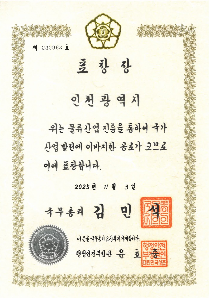 훈격: 국무총리, 주관부서: 물류정책과