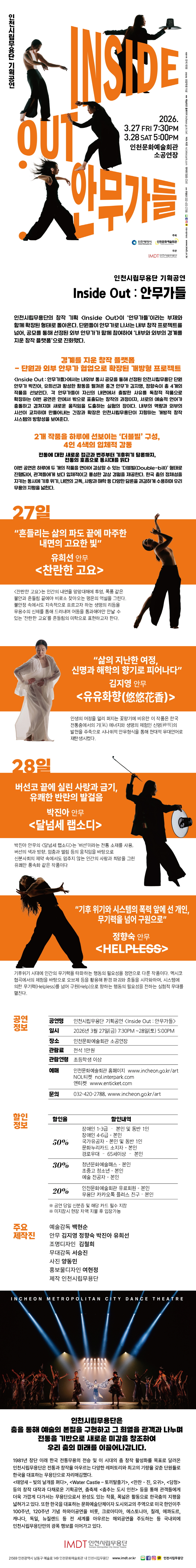 ■ 인천문화예술회관 유료회원 20% 할인- 유료일반회원:2매까지ㅣ유료가족회원:4매까지, 공연 당일 회원카드 미지참시 현장 차액 지불