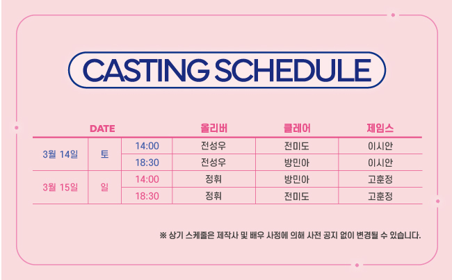 ※불법 거래(프리미엄 티켓 판매, 티켓 양도 사기)로 발생하는 불이익에 관하여 제작사 및 예매처에서는 책임을 지지 않습니다. 반드시 정식 예매처를 통해 예매해주시기 바랍니다.
