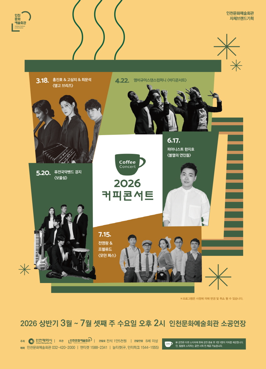 2026 커피콘서트 상반기(3월~7월) 라인업 안내