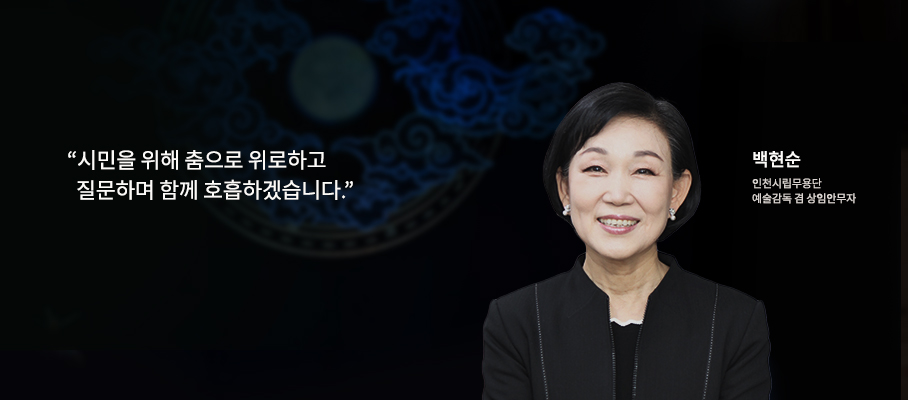 인천시립무용단의 제10대 예술감독으로 부임한 백현순은 한국 전통춤과 창작춤 분야에서 무용가이자 교육자로 40여 년간 활동해왔다. 대구시립국악단 정재단원, 창원시립무용단 상임안무자, 경북예고 및 한국체육대학교 교수, (사)한국춤협회 이사장 등을 역임하며 무용 현장과 교육, 기획과 행정을 아우르며 한국무용의 발전에 기여했다.