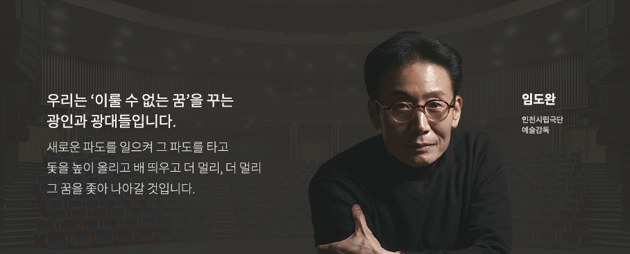 이 도시의 문화적 정체성을 예술적 동력으로 삼아 인천시립극단이 동시대의 새로움을 향한 역동적인 여정을 시민 여러분과 함께 할 것입니다. 그로 인하여 더욱 성장하고, 변화하는 문화의 구심점을 만들어 함께 호흡하며 더욱 가까워지도록 노력하겠습니다.
