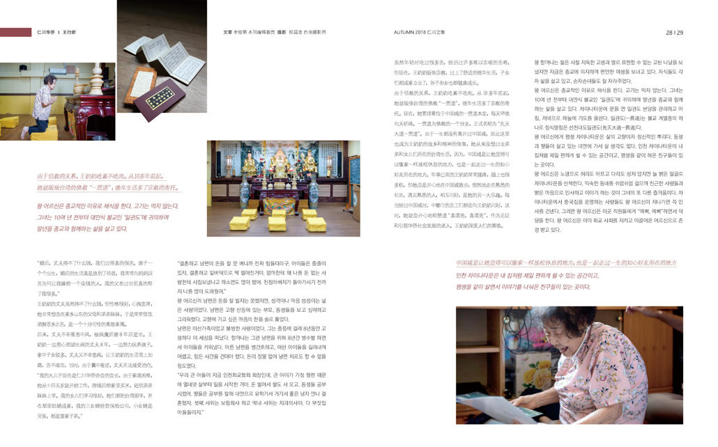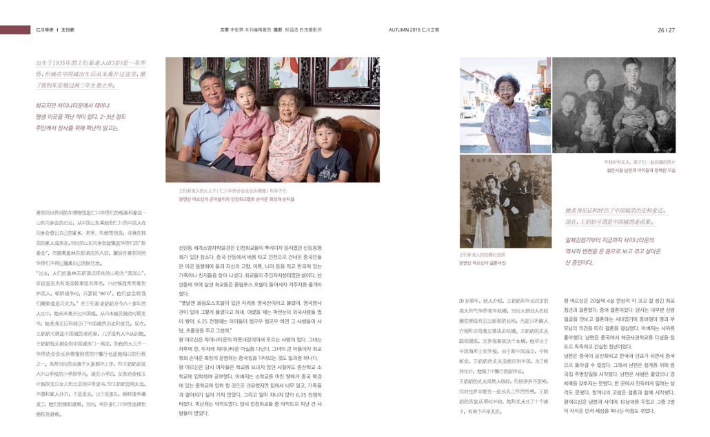 2018年《仁川之窗》秋季刊记录了华侨出身的王连信老人的真挚人生故事。在中国城出生的他,除因生计曾在朱安生活过两年外,从未真正离开过中国城。《仁川之窗》通过这位亲历了从日本殖民统治时期直至今日历史变迁的见证人,向读者传递了深切的感动。同时,他对仁川的深厚情感,也足以成为在仁川出生和成长的市民们的榜样。