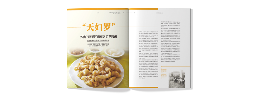 가을을 맞아 한국과 중국의 명절 풍경을 비교 분석하는 코너를 마련했다. 한국은 추석, 중국은 중추절 또는 단원절로 불리는 민족 최대의 명절에 대한 정보는 독자들에게 신선함을 제공하며 흥미를 끌었다. 음력 8월 15일에 대한 의미와 보름달을 형상화한 전통음식 문화, 모두가 함께 즐기는 흥겨운 전통놀이, 조상에게 예를 갖추는 의미 있는 행사까지, 두 나라의 닮은 듯 다른 명절 이야기가 시의성 있게 다뤄지며 계절의 변화를 실감하게 했다. 여기에, ‘덴뿌라’로 불리던 고기 튀김이 가장 유명했던 식당 ‘평화각’에 얽힌 이야기를 전문가 기고문을 통해 공유하며 가을을 닮을 풍성한 읽을거리를 독자들에게 전했다.