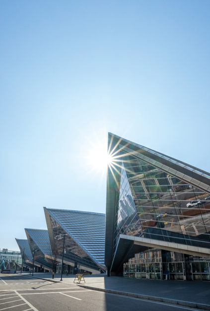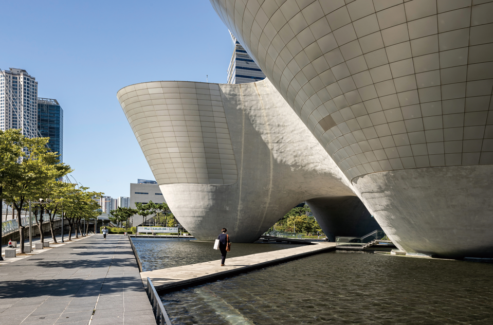 松岛未来路的最后一站“松岛会展中心”(Songdo Convensia),是松岛举办国际会议、展览、博览会的核心设施。玻璃幕墙随天光流转而变化,赋予建筑时时刻刻不一样的观感,周边步道也极为完善,可以为未来路之旅画上一个心满意足的句点。建筑外围人群流动,光影变幻,让人联想起未来之城的勃勃生机,堪称是仁川作为国际会展城市的缩影。