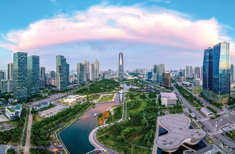 松岛国际都市是“未来之城”在当下的具象化存在。海风穿过城市的街道,玻璃幕墙建筑随着太阳东升西落折射不一样的光线,编织着城市的别样风景线。漫步其中,便是全身心感受建筑与自然、人与时间对话的过程。松岛未来路延伸出来的每一段,都在见证着仁川联通世界、探索全新生活方式与空间文化的开拓者精神。从讲述城市诞生背景的地方出发,依次经过水上建筑、宽敞的公园与水路、跨海巨桥,还有汇集八方来客的会展中心……您将看到这条路以最美丽的姿态为您展示的“未来之城发展历程”。