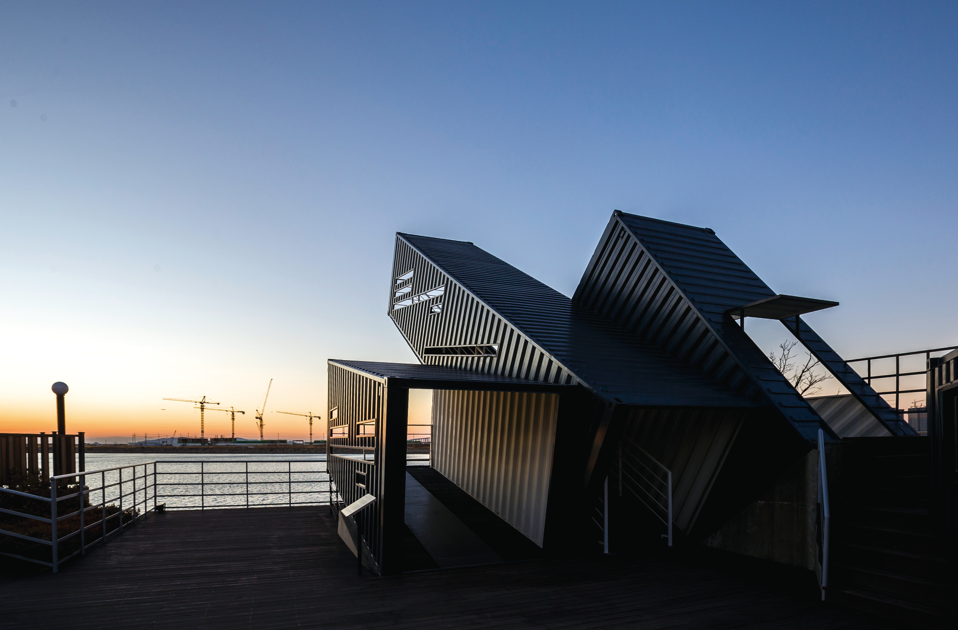 这里是松岛最近距离、最佳视角感受大海的观景圣地。利用集装箱构筑的观景台Ocean Scope(海洋镜)全景呈现仁川大桥横跨黄海海域的壮美风景。日落时分,海浪与赤霞共舞,点燃松岛特有的梦幻霞景,桥上灯光亮起时,更有光之桥梁连通城市的视觉飨宴。这一设计还曾斩获国际权威奖项“红点奖”。