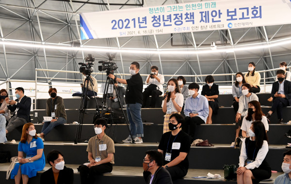 ▲仁川市计划发掘仁川型青年政策,制定展望战略(2021~2025),最大限度地反映到明年的预算中。图为7月18日在仁川创业企业园举行的“仁川青年网络青年政策提案报告会”。