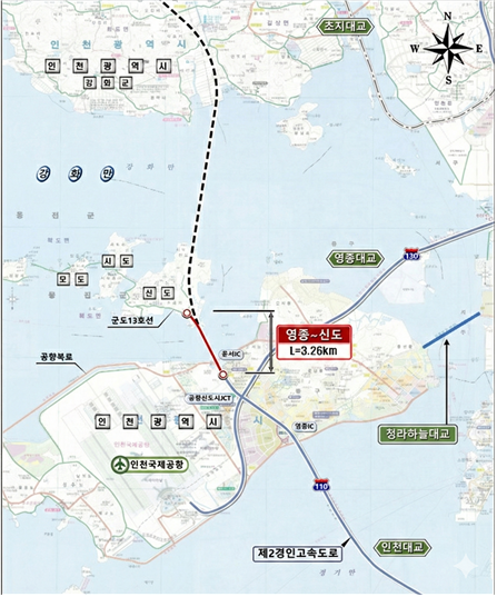 인천 중구 운서동과 옹진군 북도면 신도리를 연결하는 이 도로의 교량은 신·시·모도 주민들의 오랜 숙원인 24시간 상시 이동권을 실현하고 지역 경제에 새로운 활력을 불어넣는 희망의 교량이 될 것입니다.    우리 시는 이 역사적인 교량이 가진 가치와 지역의 정체성을 가장 잘 담아낼 이름을 찾고 있습니다. 시민 여러분의 많은 참여를 부탁드립니다.