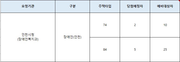 - 건설사의 사정으로 입주자 모집공고일이 최초 인천시 홈페이지에 안내한 입주자 모집공고(예정)일로부터 6개월 이상 연기될 경우 기존 접수 건에 대해서는 일괄 취소하고 기존 접수자를 포함하여 전면 재신청 실시함을 숙지하신 뒤 신청해 주시기 바랍니다.