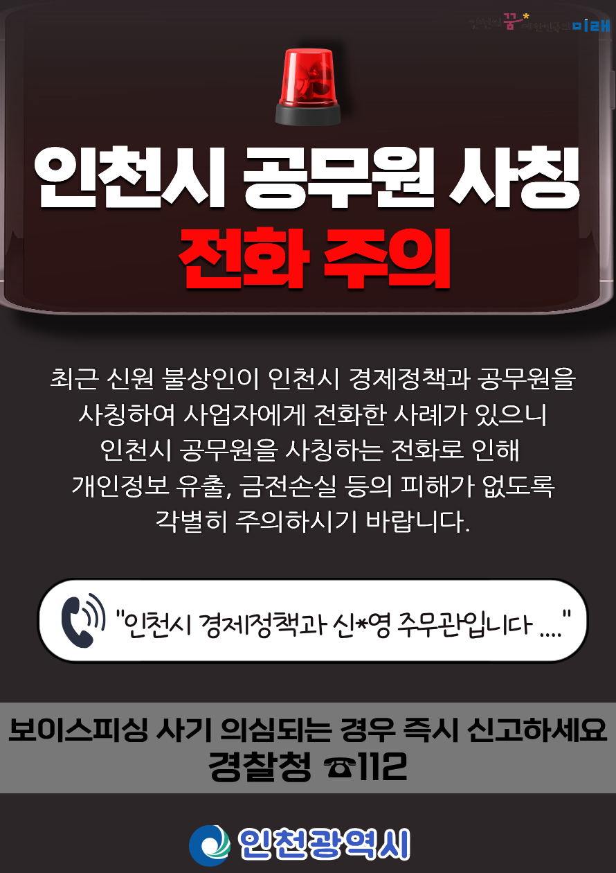 인천시 경제정책과 공무원 사칭 주의하세요!