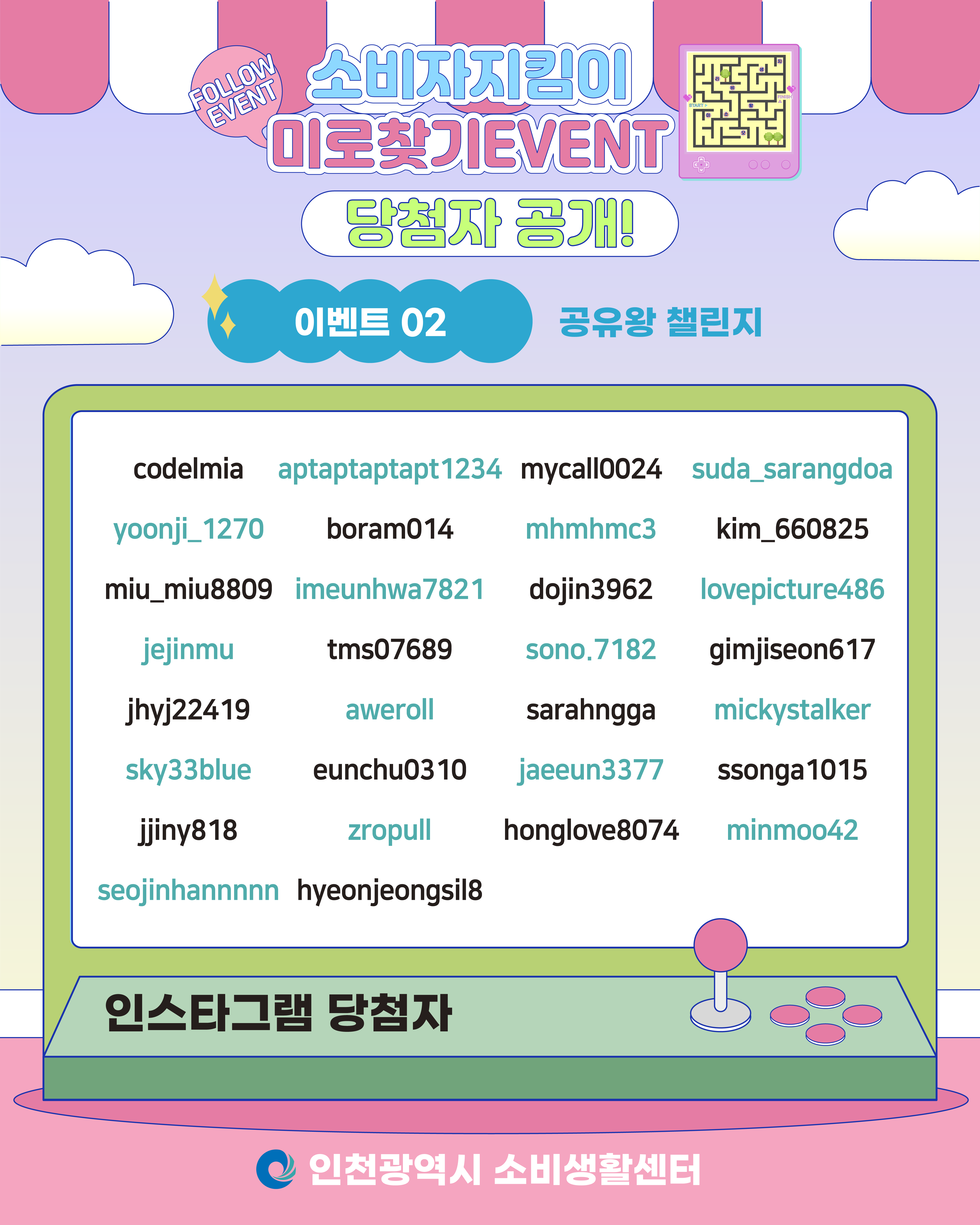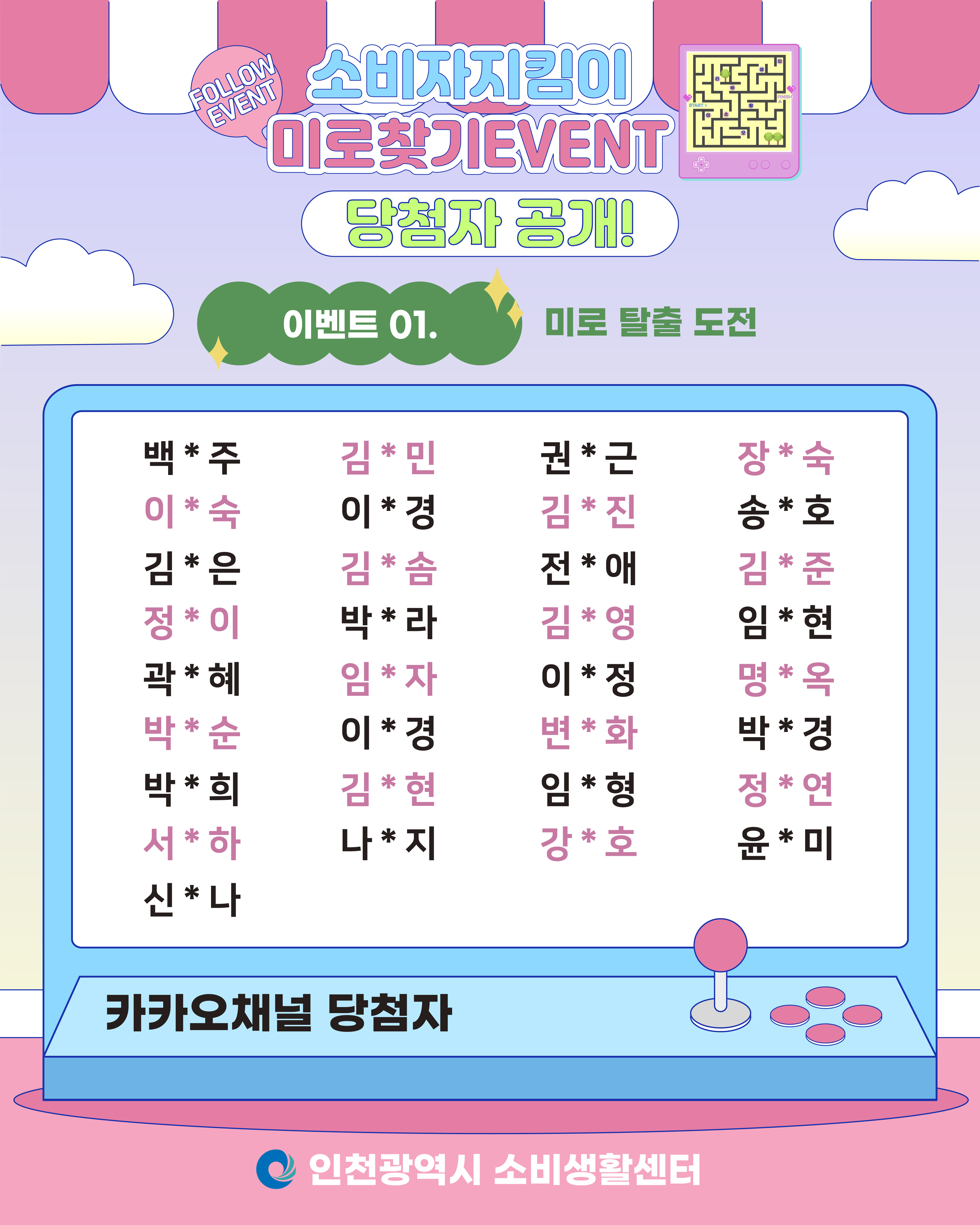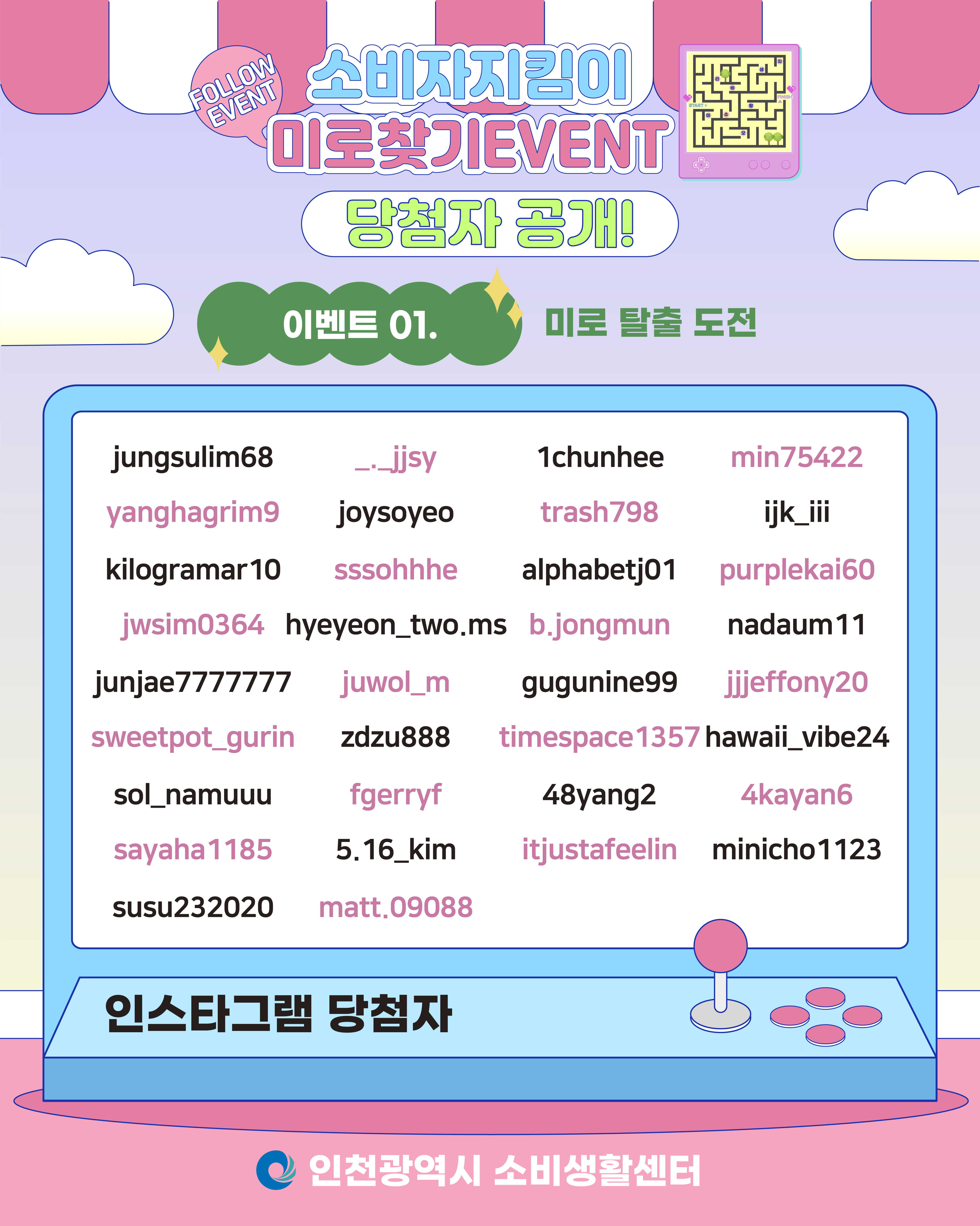 #인천광역시소비생활센터 #인천광역시 #소비자지킴이이벤트 #미로찾기이벤트 #팔로우이벤트당첨자발표